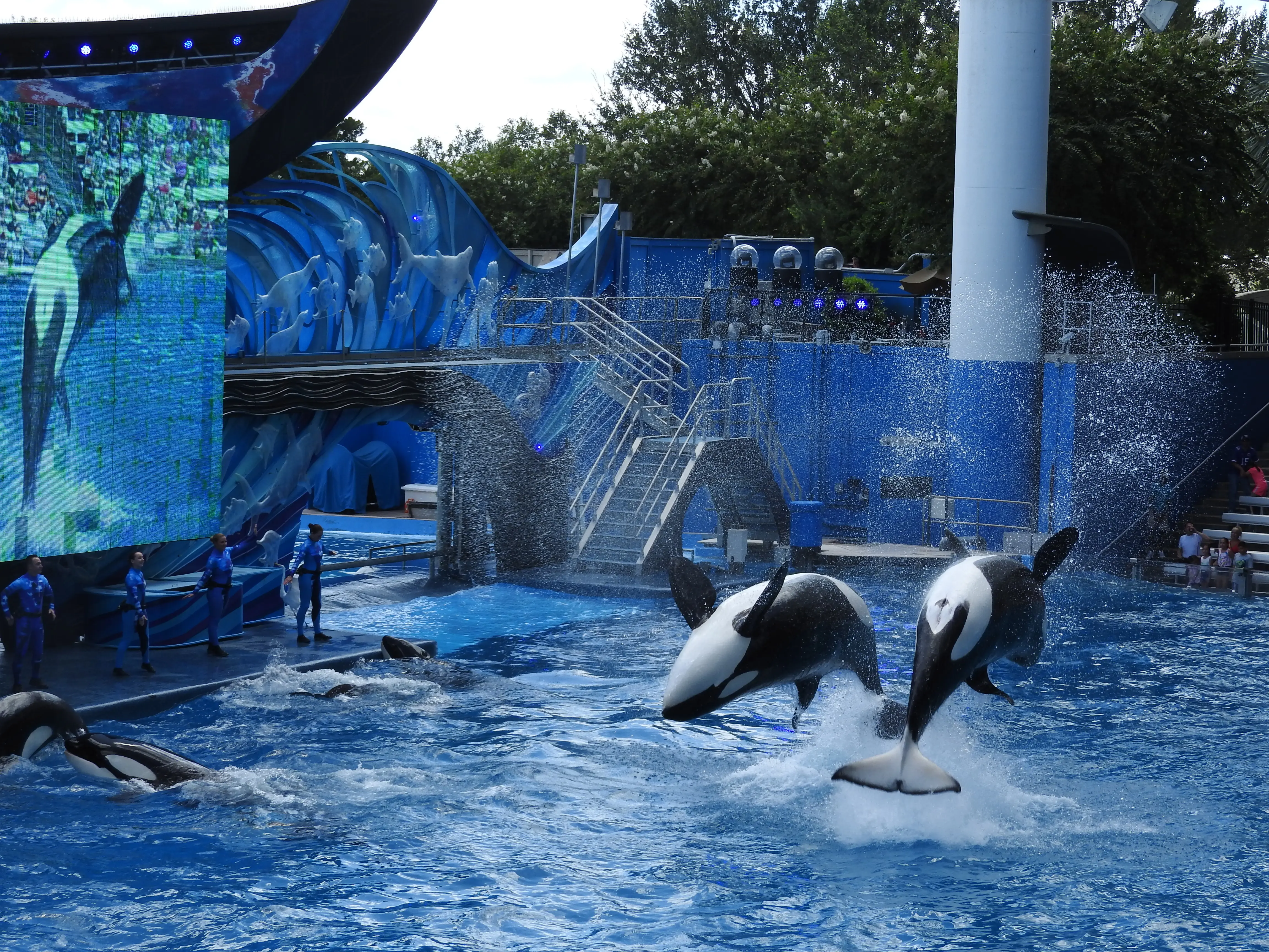 Daarna gaan we richting Shamu de Orca Show we hebben hem vrijdag in het donker gezien met een mooie lichtshow en vandaag in het licht bekijken. Het blijft heel imposant om te zien die grote beesten die allerlei kunstjes doen.
