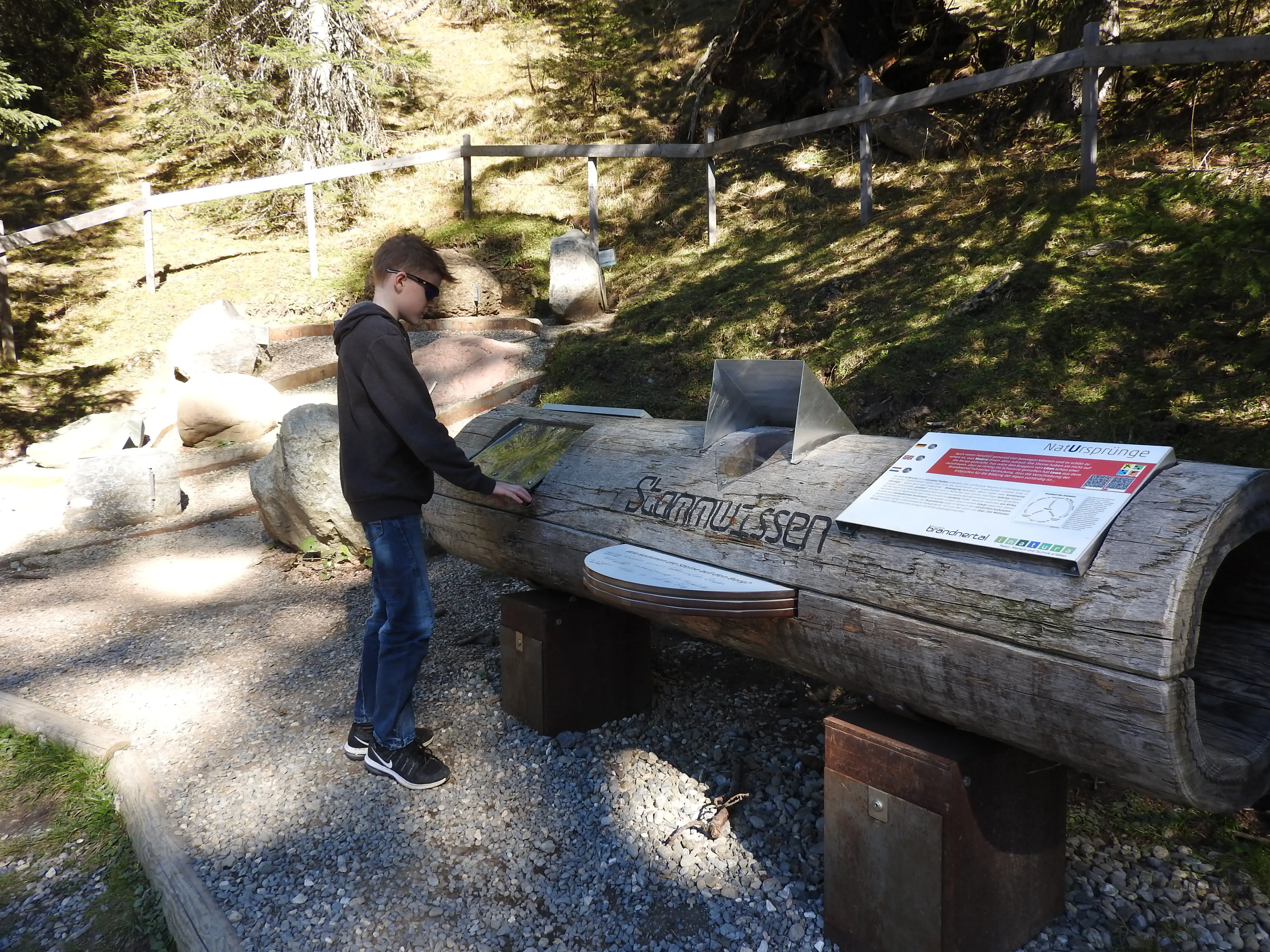 Het toeval wil dat hier boven op de berg ook een Multi van een geocache begint, die loopt over de kinder route die we toch al wilden doen dus 2 vliegen in een klap. Alleen hoe z’n Oostenrijkse multi werkt geen idee geen vragen geen berekeningen alleen maar Waypoints. We zullen het zien en gaan vol goede moed op pad.