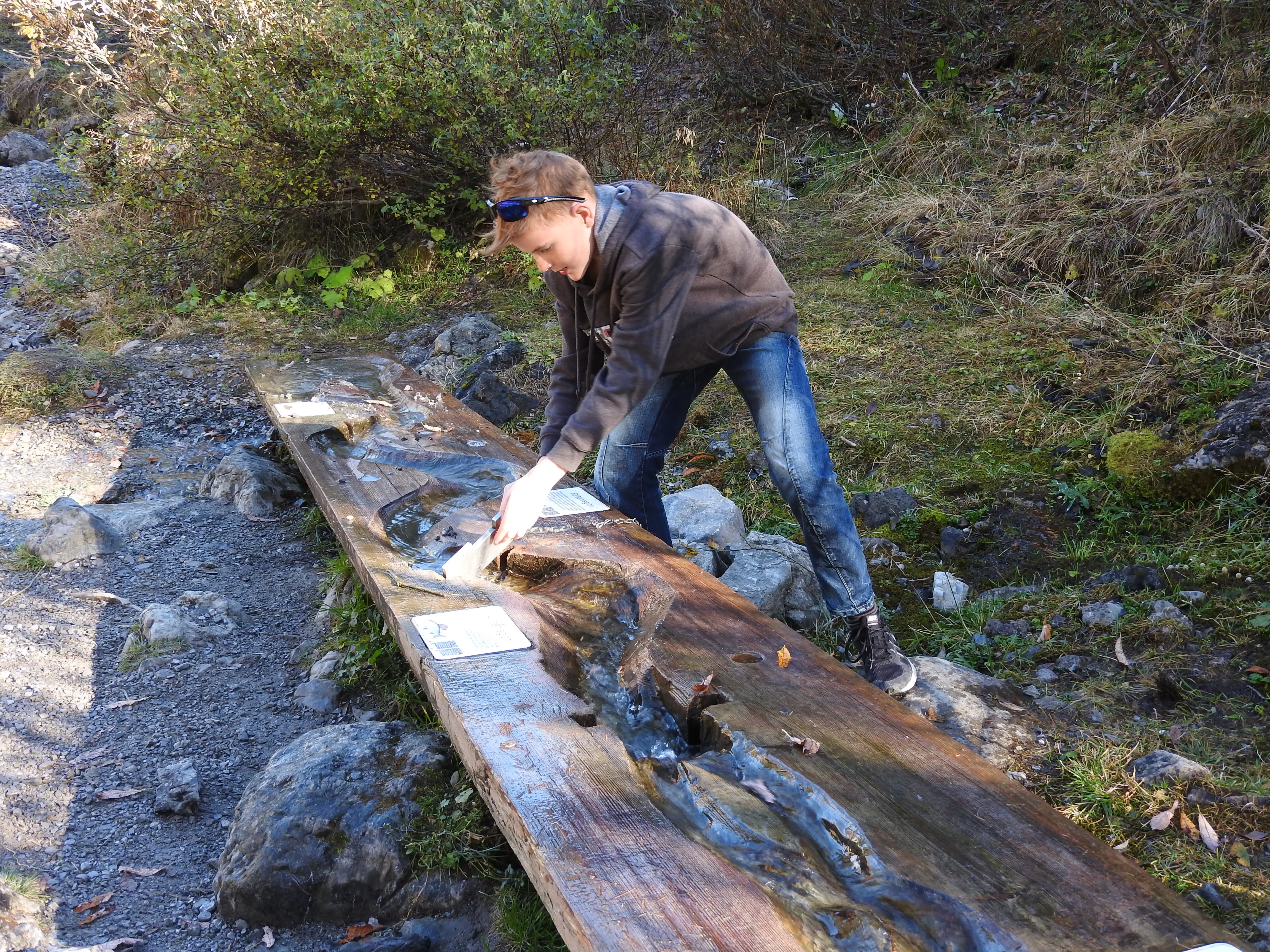 Bijna aan het eind komen we ook nog bij een kleine waterval waar ze voor de kinderen wat speel dingen hebben neerzet, Martijn helemaal in zijn element lekker knoeien met water.