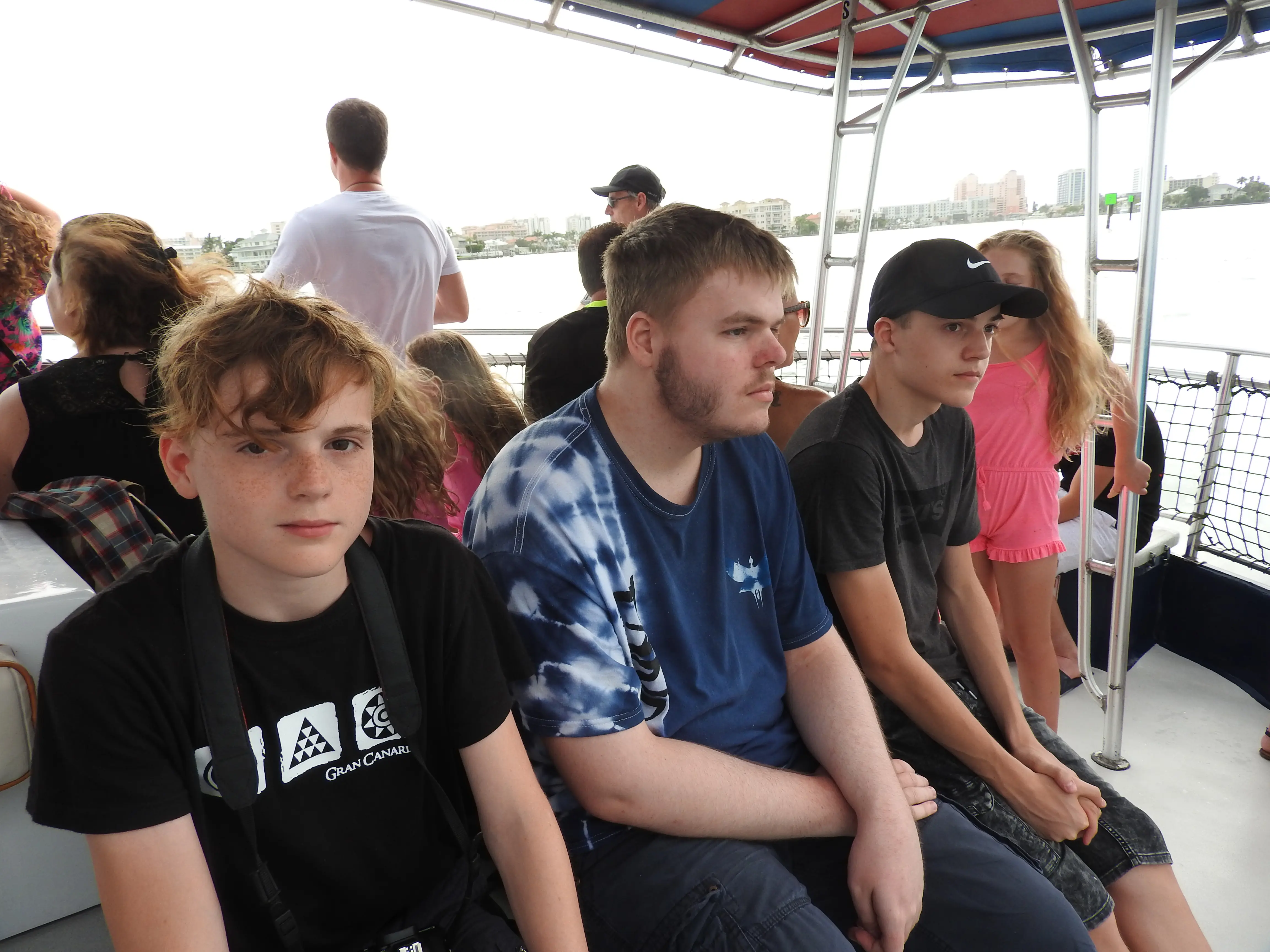 We moeten weer op tijd vertrekken omdat we om 19.15 met Little Toot meegaan en daarvoor nog willen eten. We gaan bij Crabby’s Dockside eten een vis restaurant waar we spontaan allemaal kiezen voor de kip met pasta, een grote schaal vol.