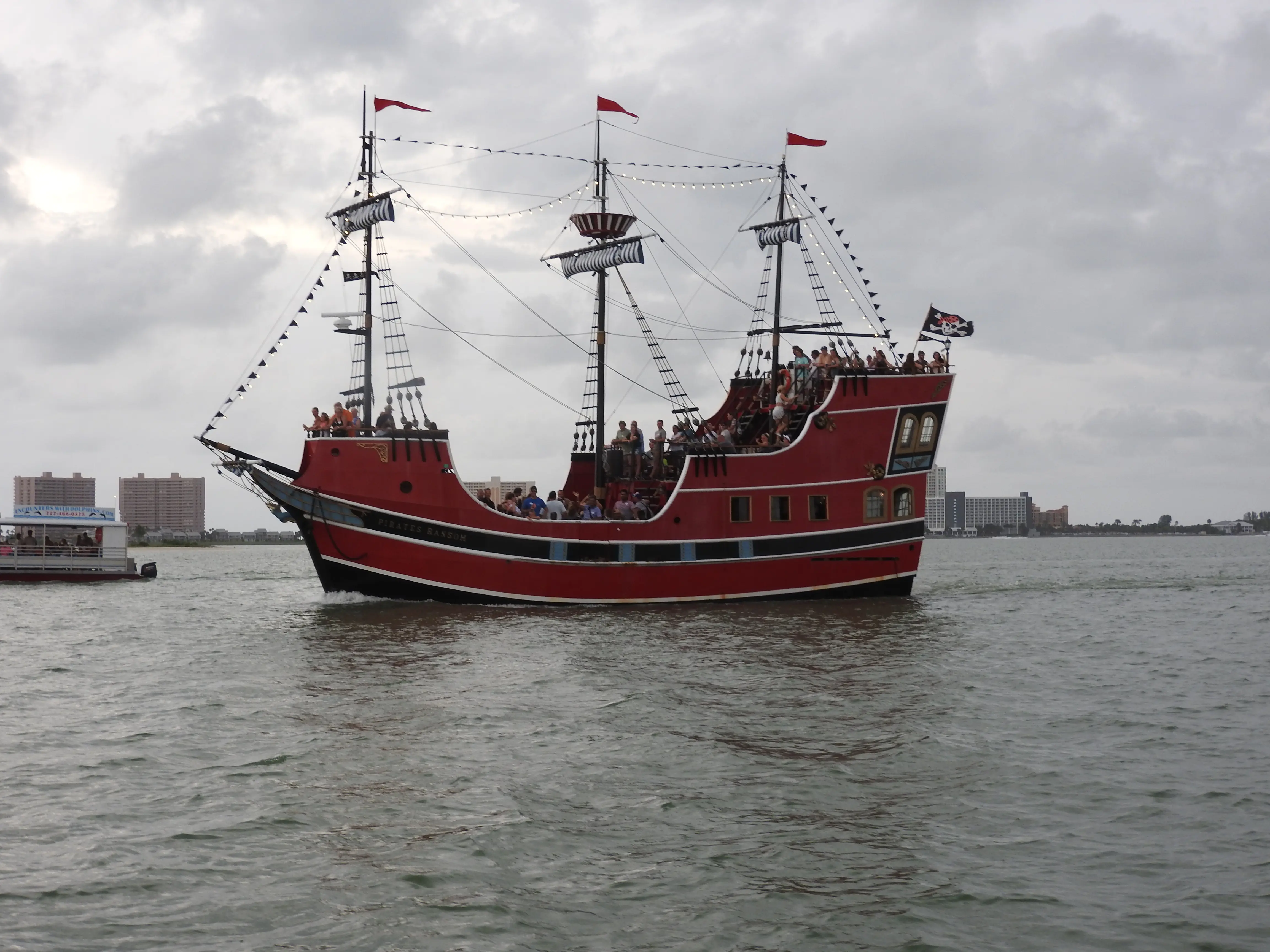 Onderweg komen we ook een piraten schip tegen heel leuk om te zien. Maar de dolfijnen worden niet meer gespot.