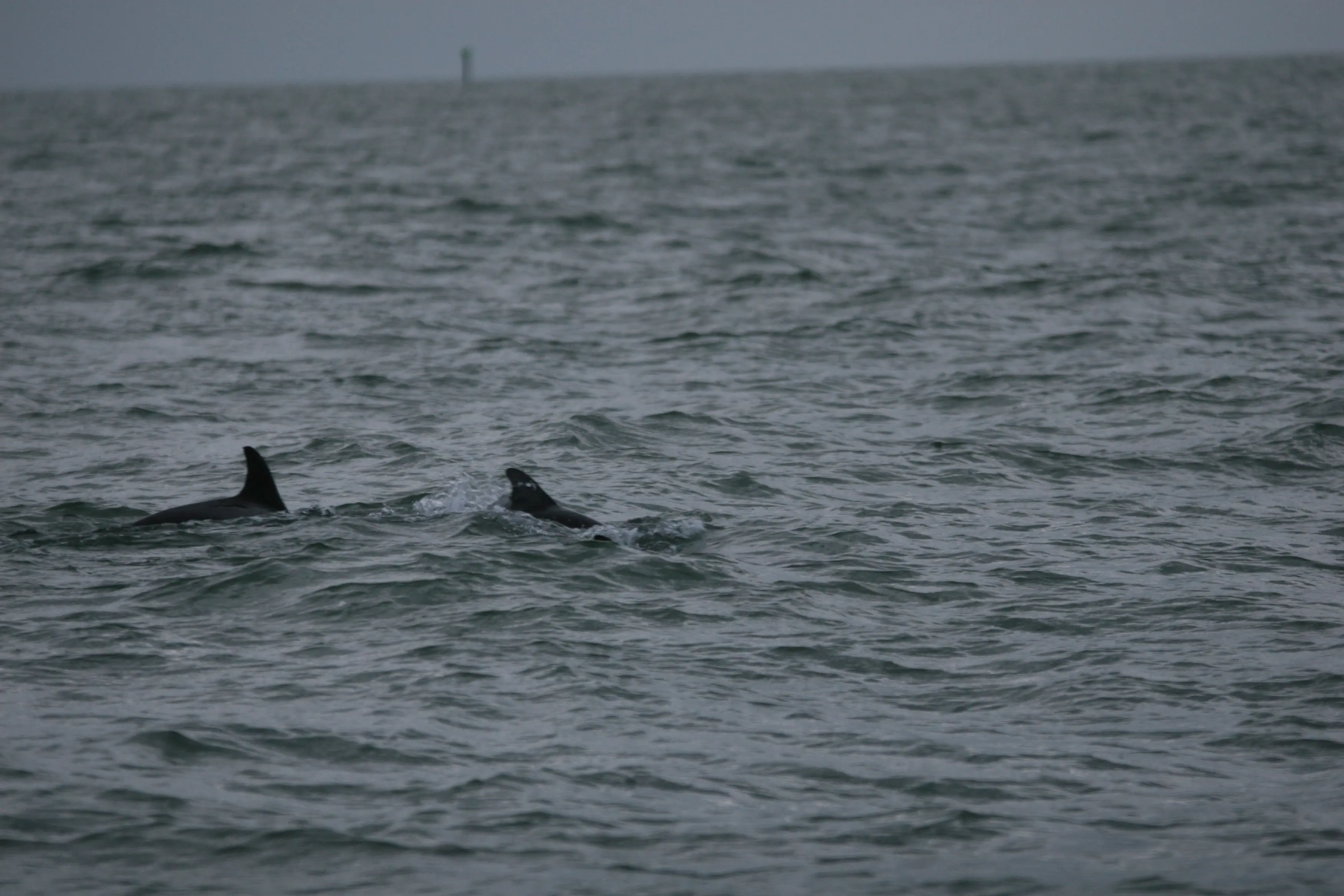 Gelukkig staan de kapiteins in verbinding met elkaar want even later varen we de volle zee op en zien we nog veel meer dolfijnen. Het is helaas al vrij donker geworden dus foto’s maken lukt bijna niet.