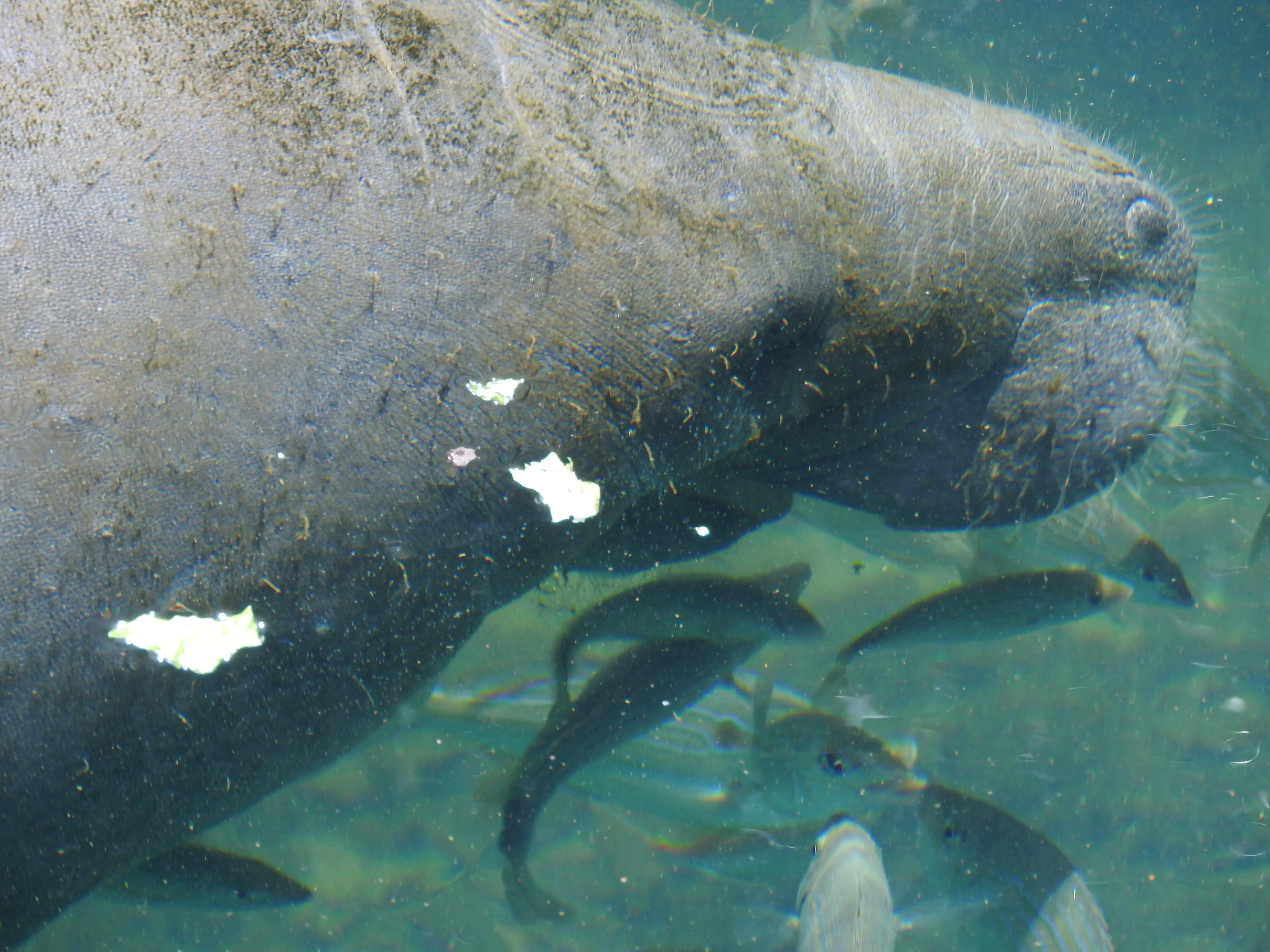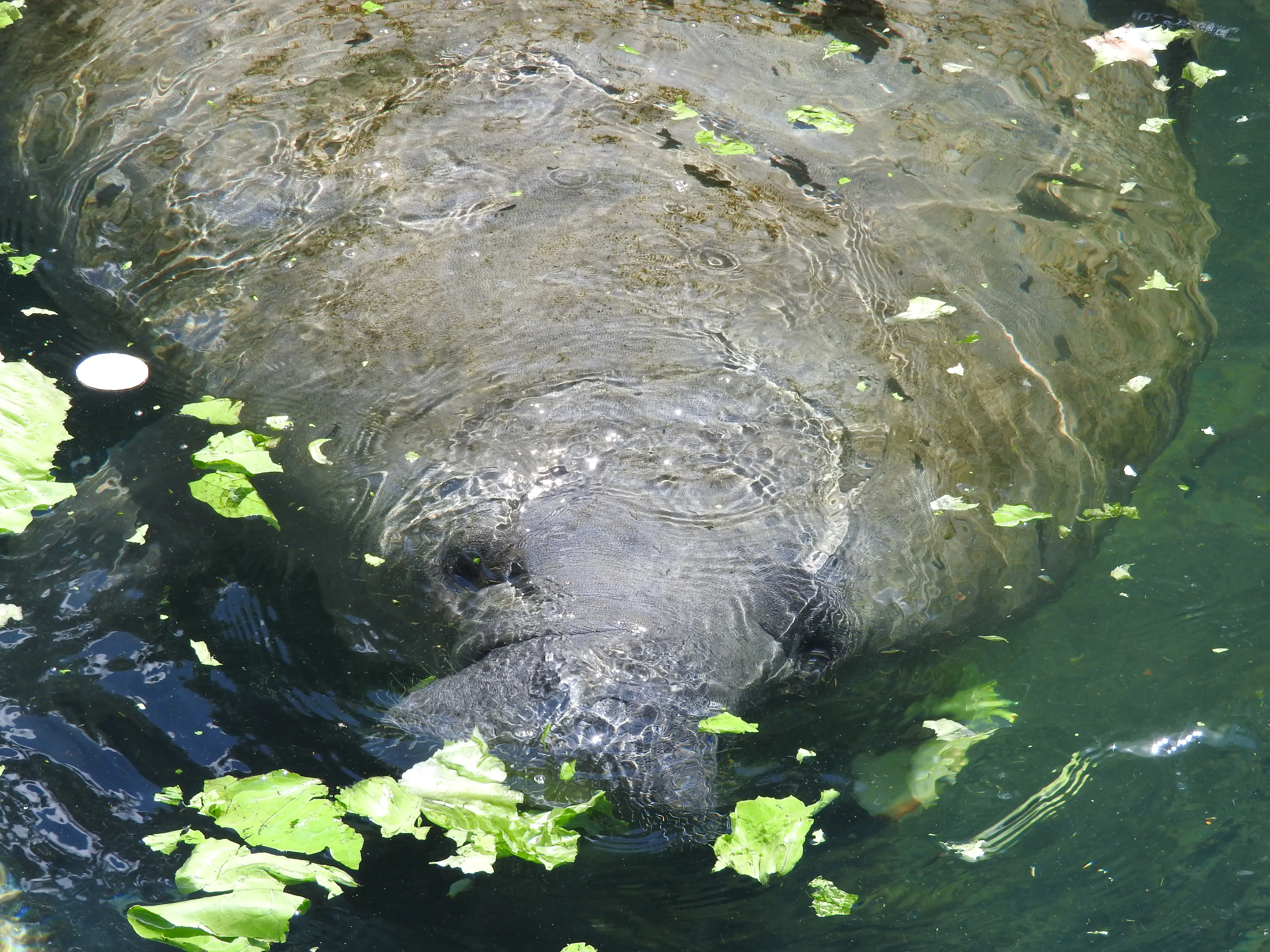 Als we binnenkomen horen we een mevrouw informatie geven bij de Manatee’s dus daar lopen we naar toe het is een drukte van belang. Ze zijn op dit moment ook aan het voeren hele kroppen andijvie worden in het water gegooid. Het zijn hele grote beesten niet te snel dus we kunnen leuke foto’s maken.