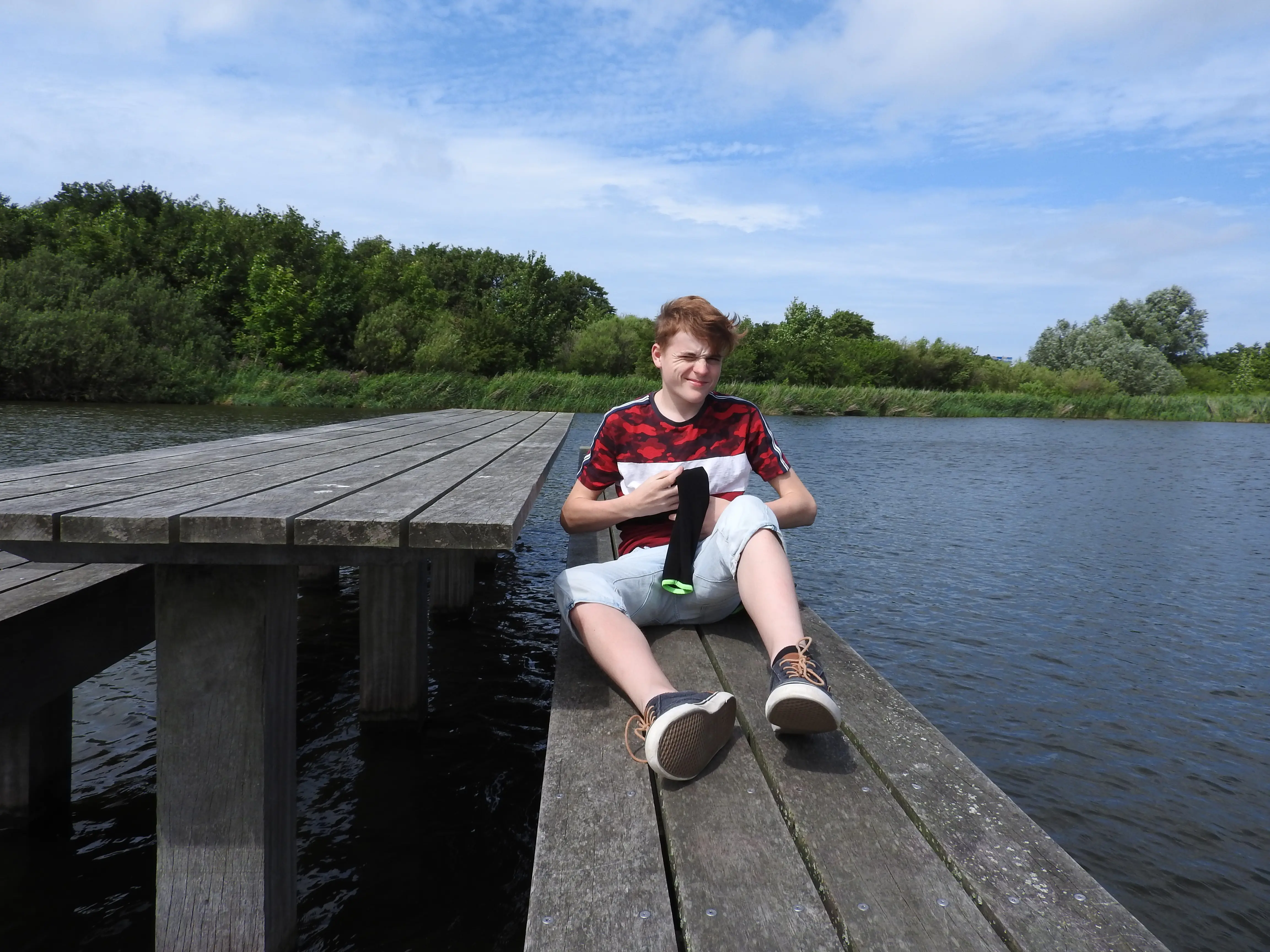 Daarna lopen we langs de haven en passeren een mevrouw die het presteert om bijna al haar boodschappen te verliezen uit haar tas en dat niet in de gaten heeft, eerst de broodjes, komkommer waarvoor we haar terug roepen maar ze heeft schijnbaar haast want terug komen voor haar karnemelk doet ze niet.