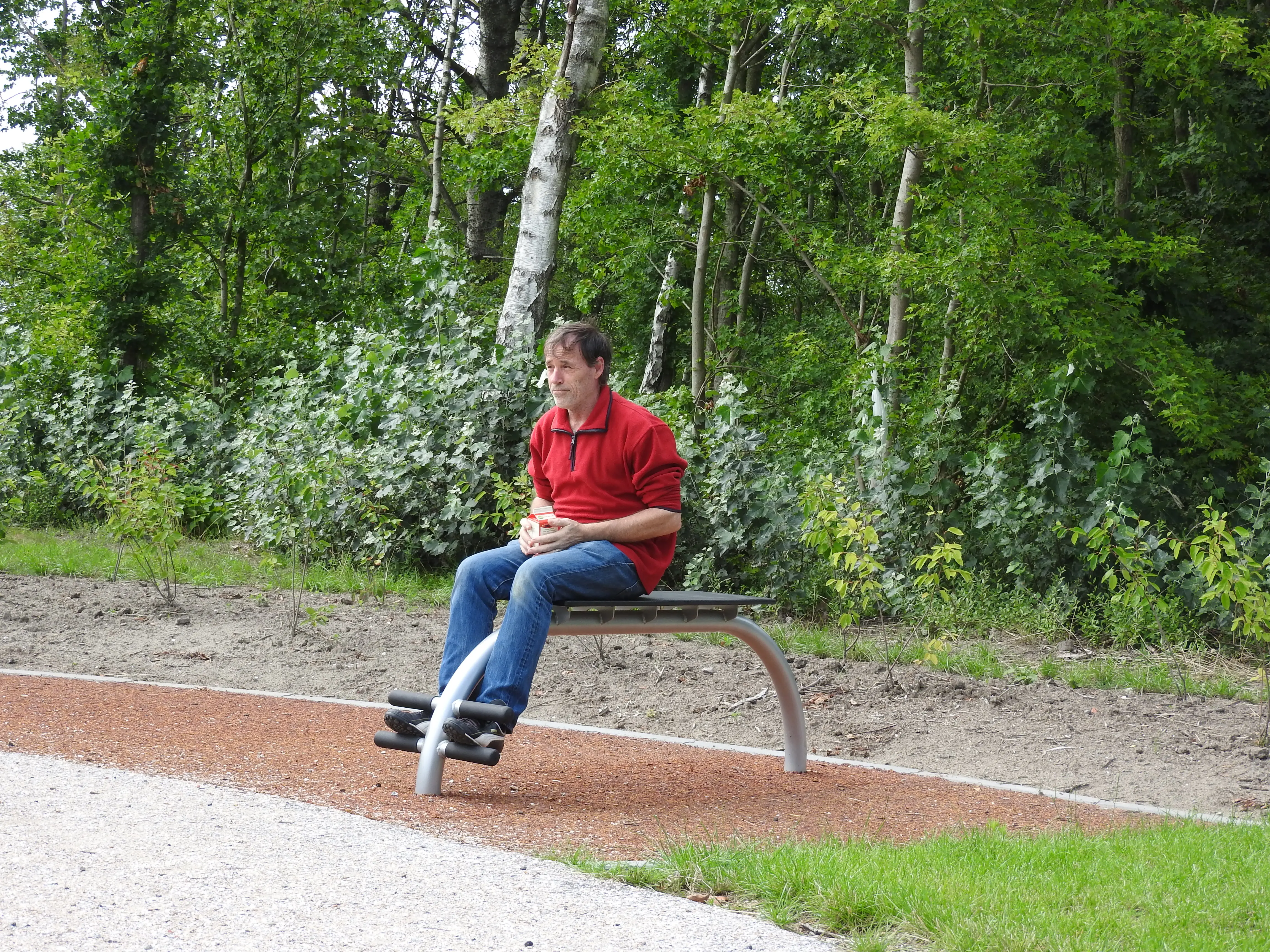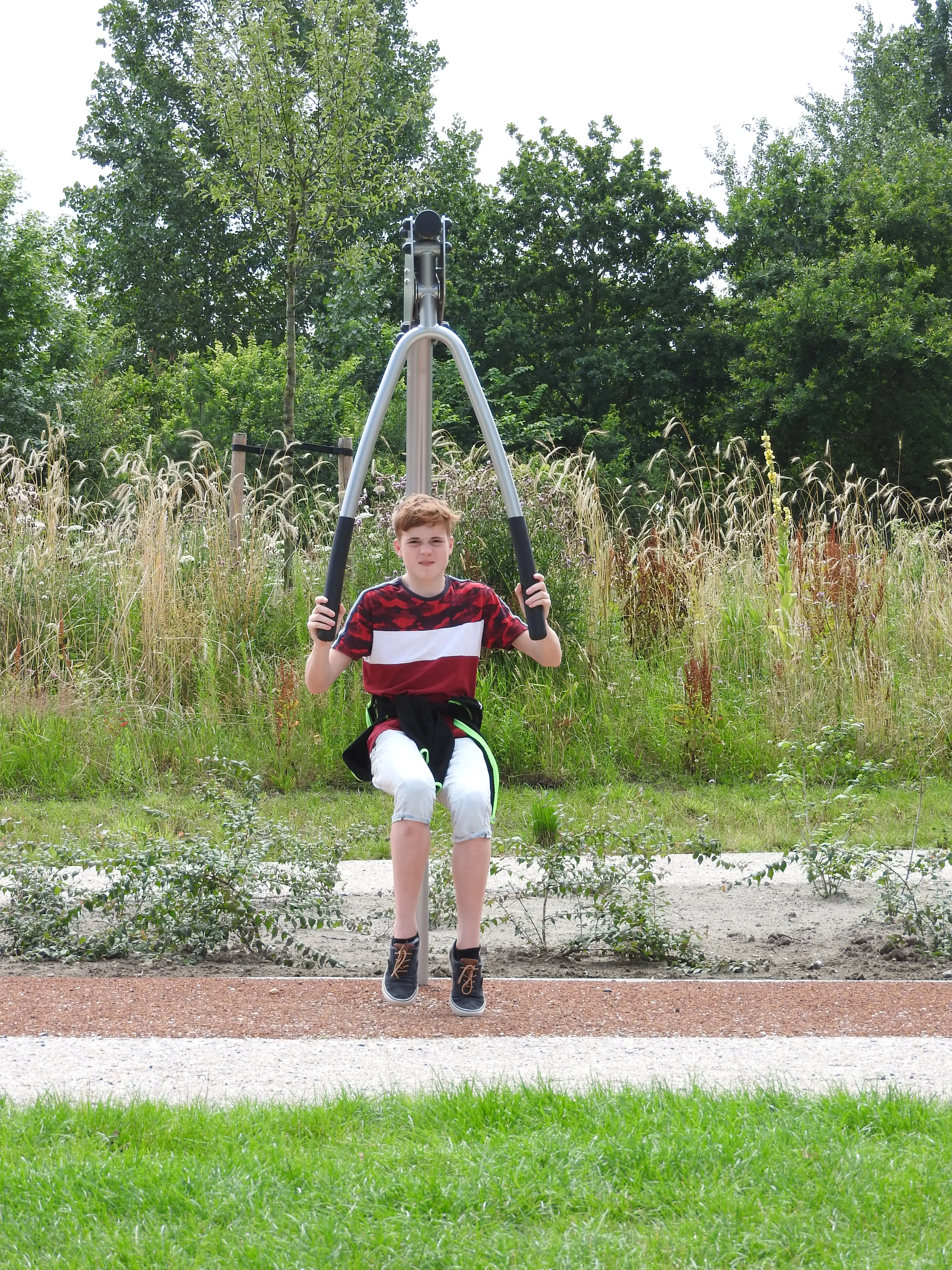 Daarna gaat de tocht verder waarna we een leuke sportplaats tegen komen die door Rob en Martijn toch even uitgetest moet worden terwijl ik weer een berekening maak.