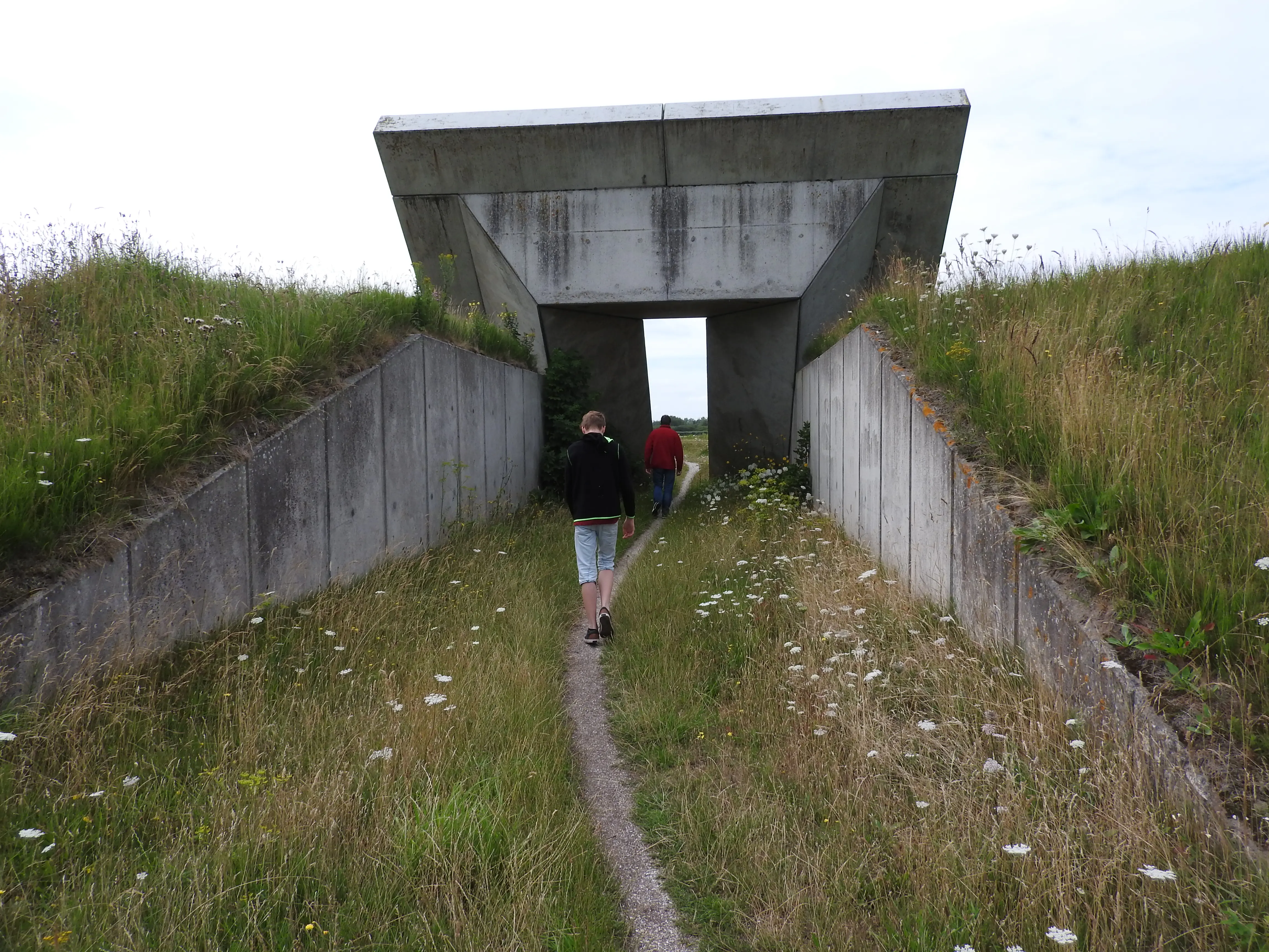 Aan het eind van het pad bereiken we de dijk met daarachter de waddenzee, lekker veel wind dus goed uit te houden. We moeten ongeveer een kilometer over de dijk lopen om op het punt aan te komen waar we weer wat moeten zoeken.
