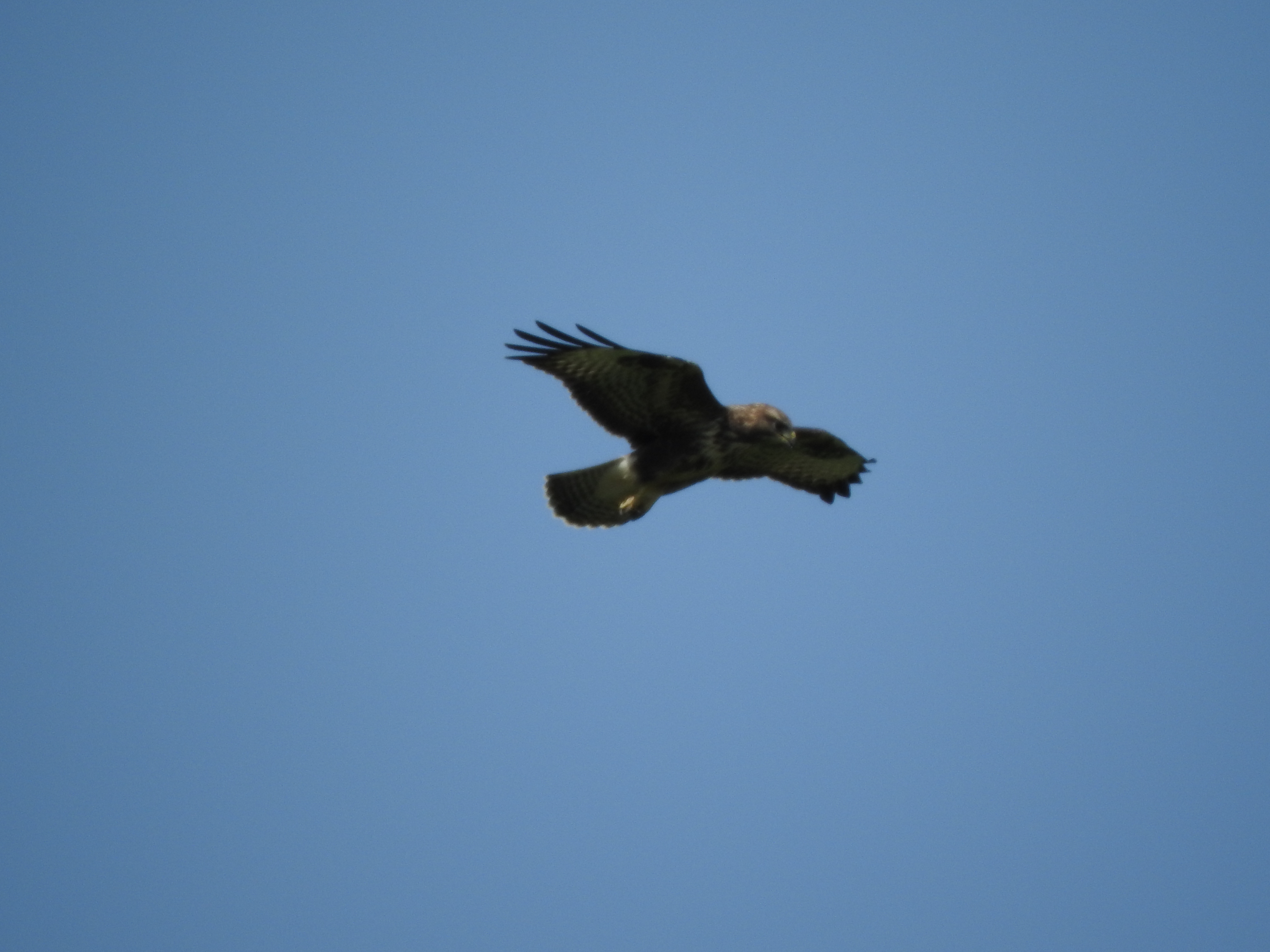 Terwijl je dan ergens langs een landweggetje staat zie je in de verte een roofvogel in de lucht hangen, dus gauw de camera gepakt en een paar pogingen gedaan om een foto te maken een was er gelukkig gelukt.