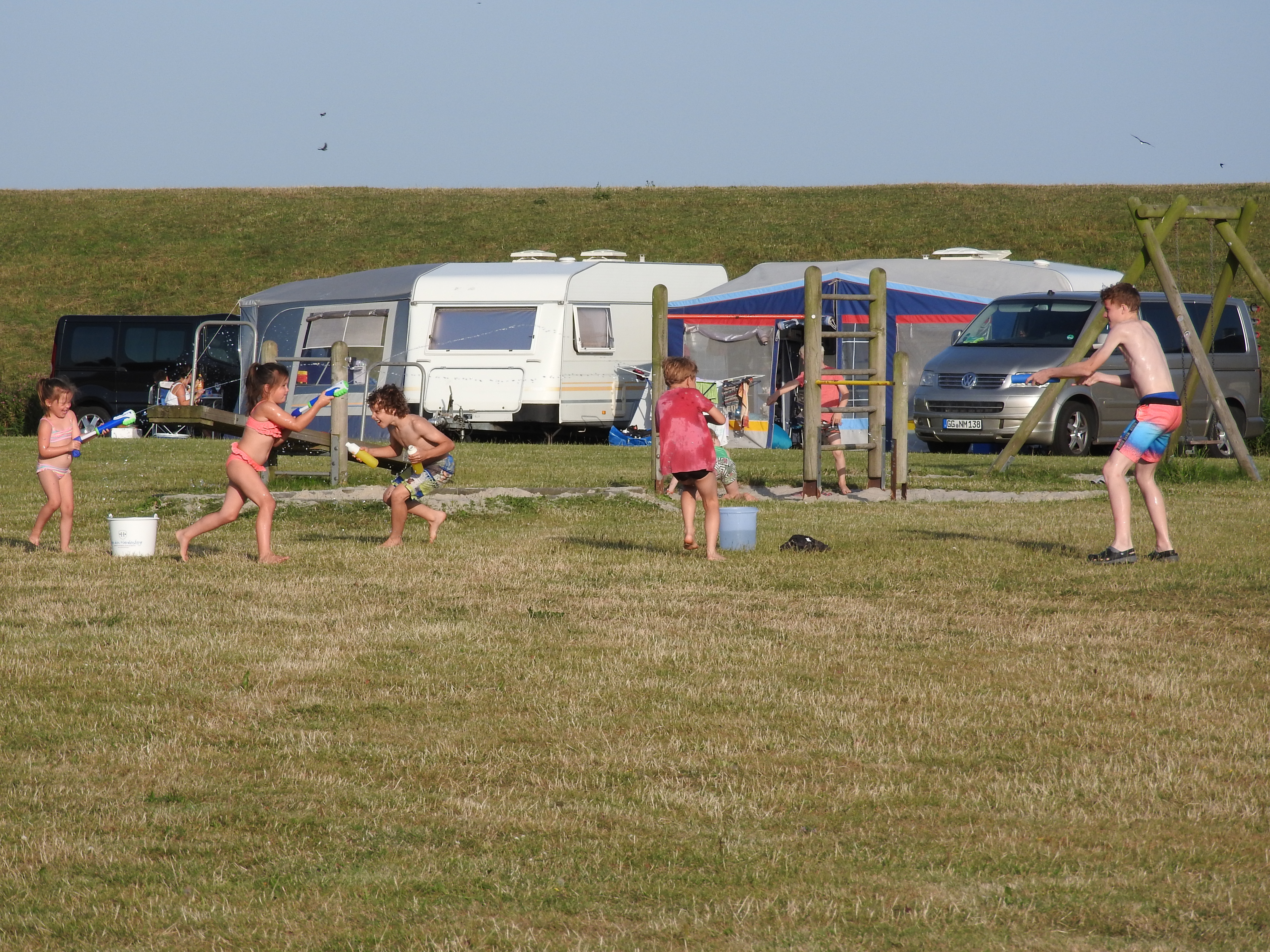 Net voor het eten komt Martijn vragen of hij een water gevecht mag houden, en zou gauw ze bezig zijn komen alle kinderen op het veld mee doen.