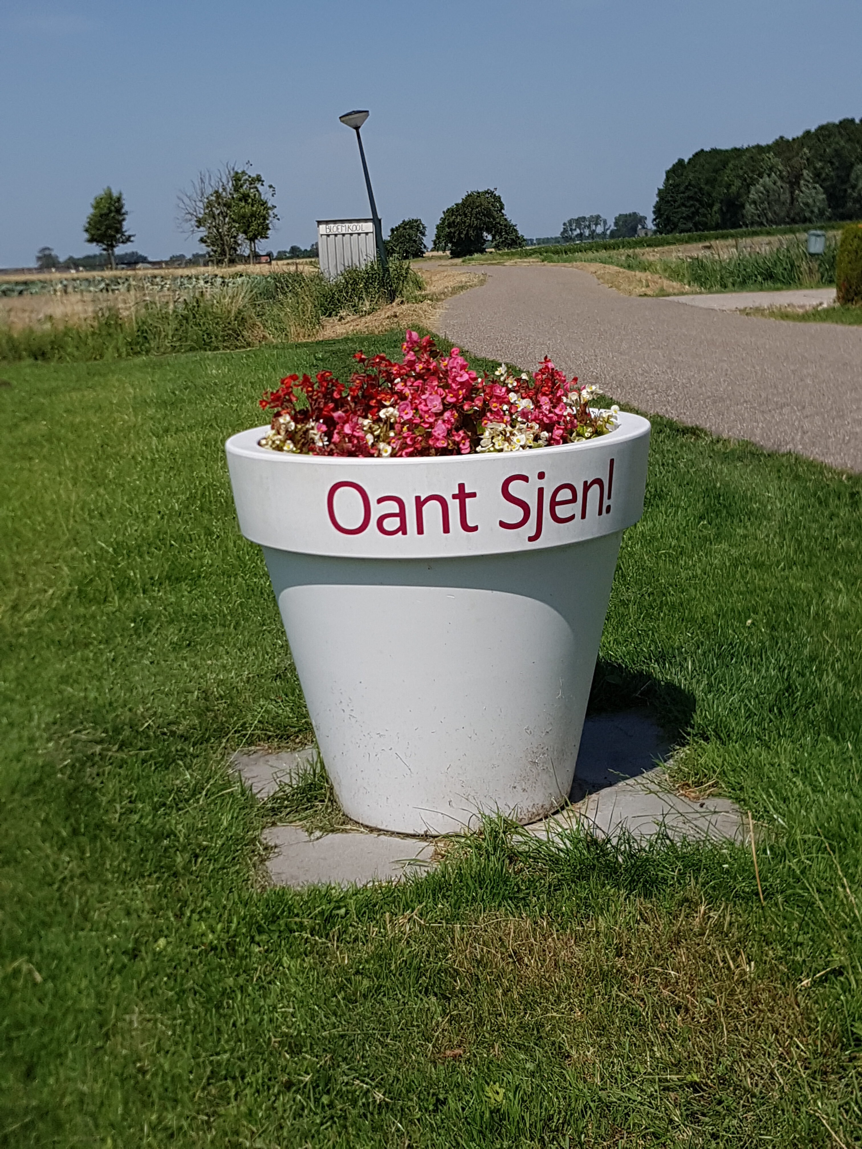 Wat ik ook heel leuk vindt zijn de bloempotten in dit dorp die de mensen welkom heten en dag zeggen.