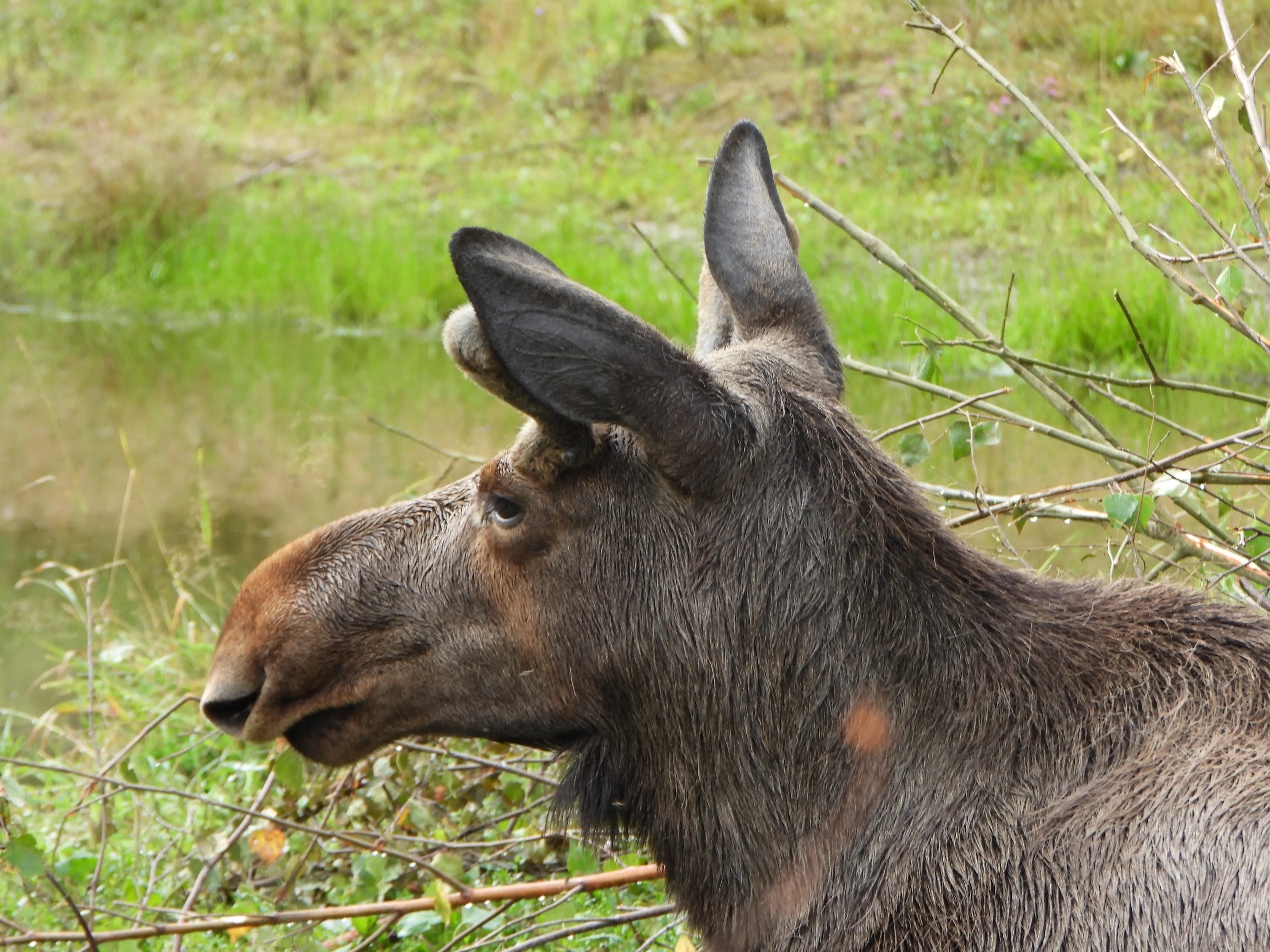 Vandaag hebben we een plan gemaakt om Elanden te gaan kijken aangezien we die in het wild niet tegen zijn gekomen. We hebben een leuk park “het Målilla Elk Park” uitgezocht waar we ongeveer 45 minuten voor moeten rijden. We gaan vanmorgen meteen na het ontbijt op pad. Na 5 minuten roept Martijn ik zag een hert en nog geen minuut verder staat er een op de weg. We hadden de camera’s natuurlijk nog achter in de auto liggen, en je raad het al op het moment dat ik mijn camera voor in de auto leg is er geen hert meer te bekennen.
