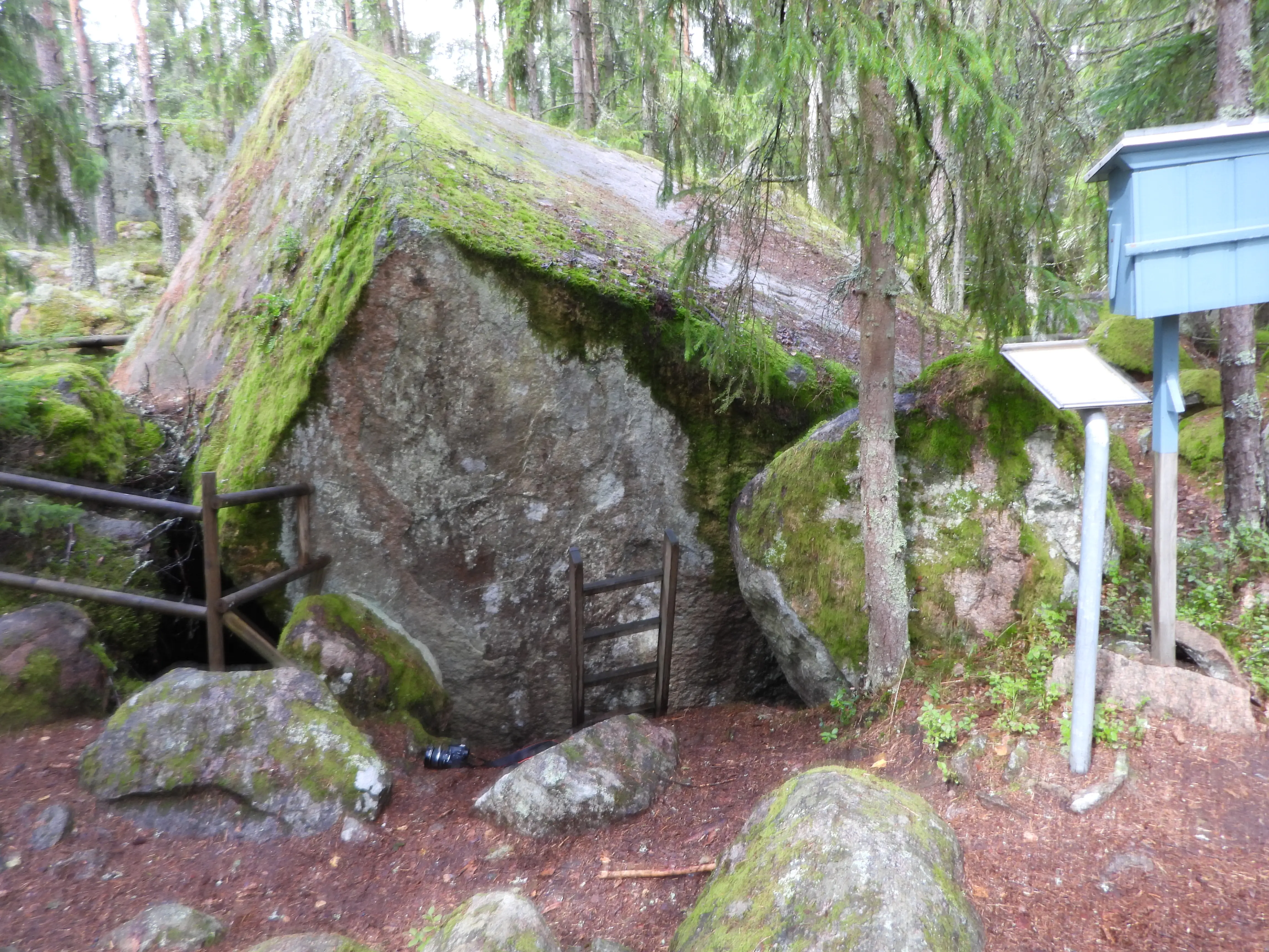 Lars Molin (1785-1845) uit Ramsberg in Västmanland pleegde een reeks diefstallen in Zweden. Hij was verkleed als vrouw en kreeg daarom de naam Lasse-Maja. Hij is heel lang bij de politie weggekomen voordat hij werd gepakt. Tijdens een van deze razzia’s had hij zijn schuilplaats in deze grot, bedekt onder een grote rots en bestaande uit twee ruime kamers. Door middel van een ladder is het mogelijk om deze ondergrondse woning te bezoeken. Lasse-Maja werd veroordeeld tot dwangarbeid voor het leven in het fort Karlsten in Marstrand 1818, maar kreeg 22 jaar later gratie. (Dit is een google vertaling)