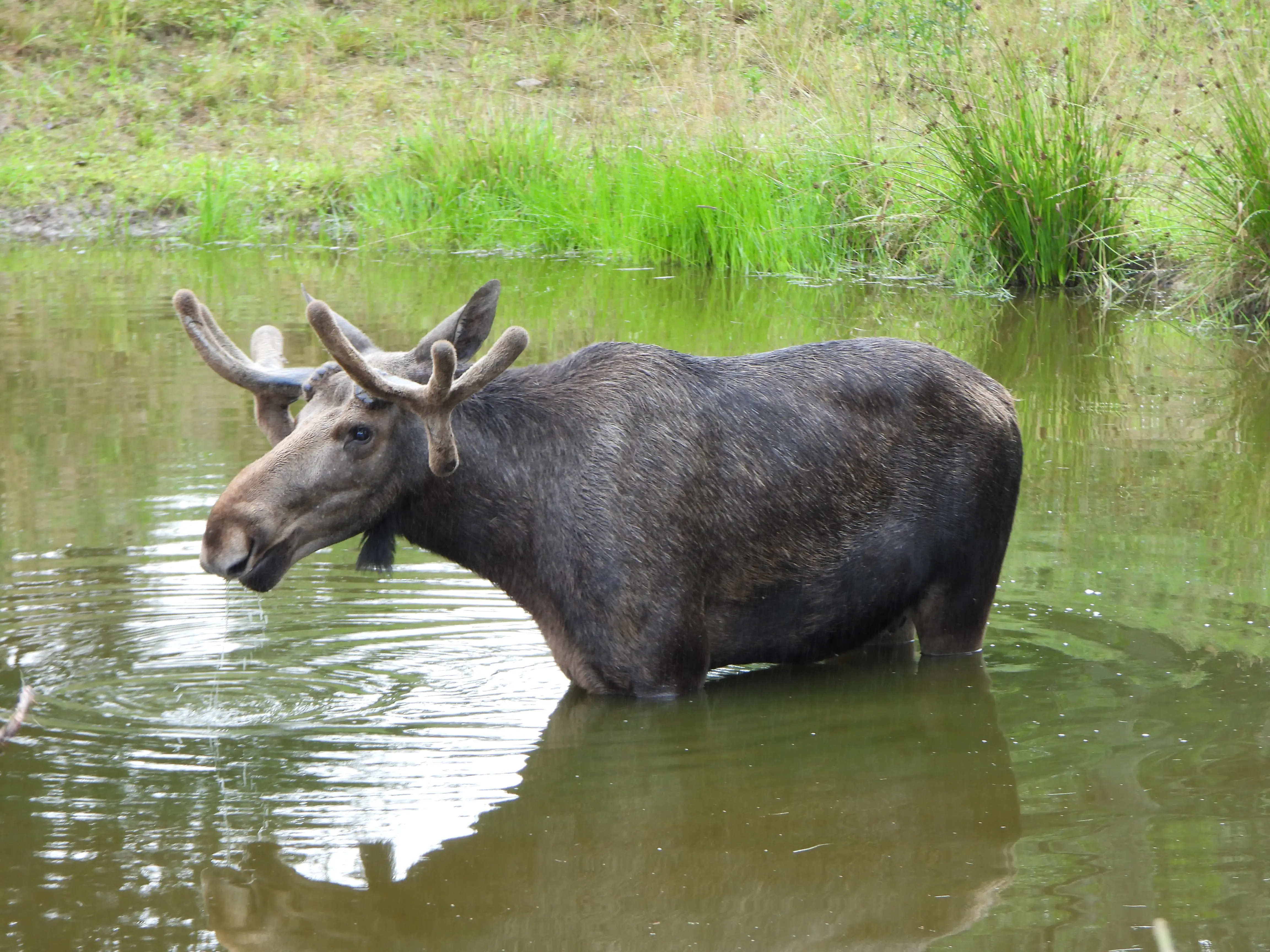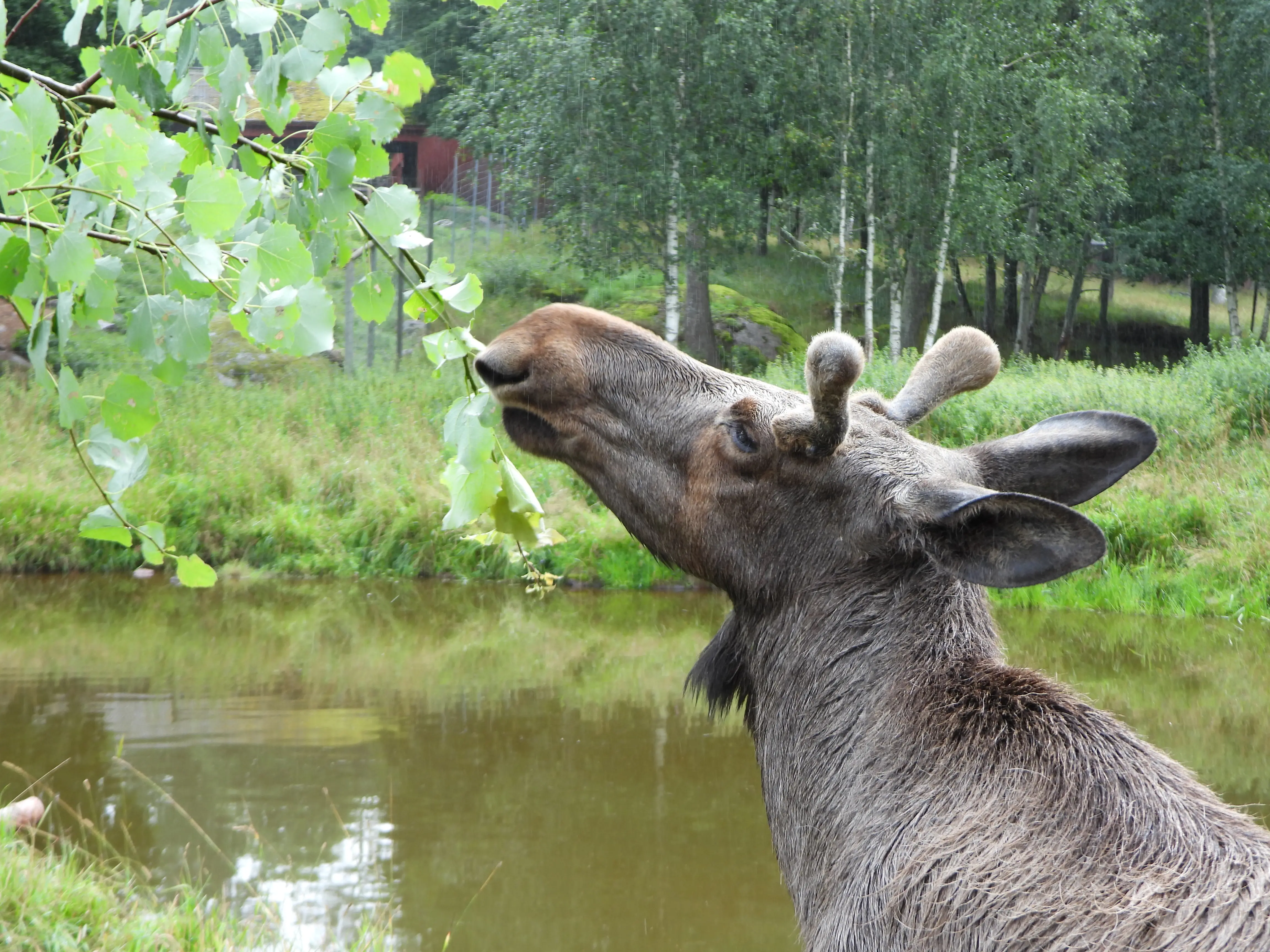 Vandaag hebben we een plan gemaakt om Elanden te gaan kijken aangezien we die in het wild niet tegen zijn gekomen. We hebben een leuk park “het Målilla Elk Park” uitgezocht waar we ongeveer 45 minuten voor moeten rijden. We gaan vanmorgen meteen na het ontbijt op pad. Na 5 minuten roept Martijn ik zag een hert en nog geen minuut verder staat er een op de weg. We hadden de camera’s natuurlijk nog achter in de auto liggen, en je raad het al op het moment dat ik mijn camera voor in de auto leg is er geen hert meer te bekennen.