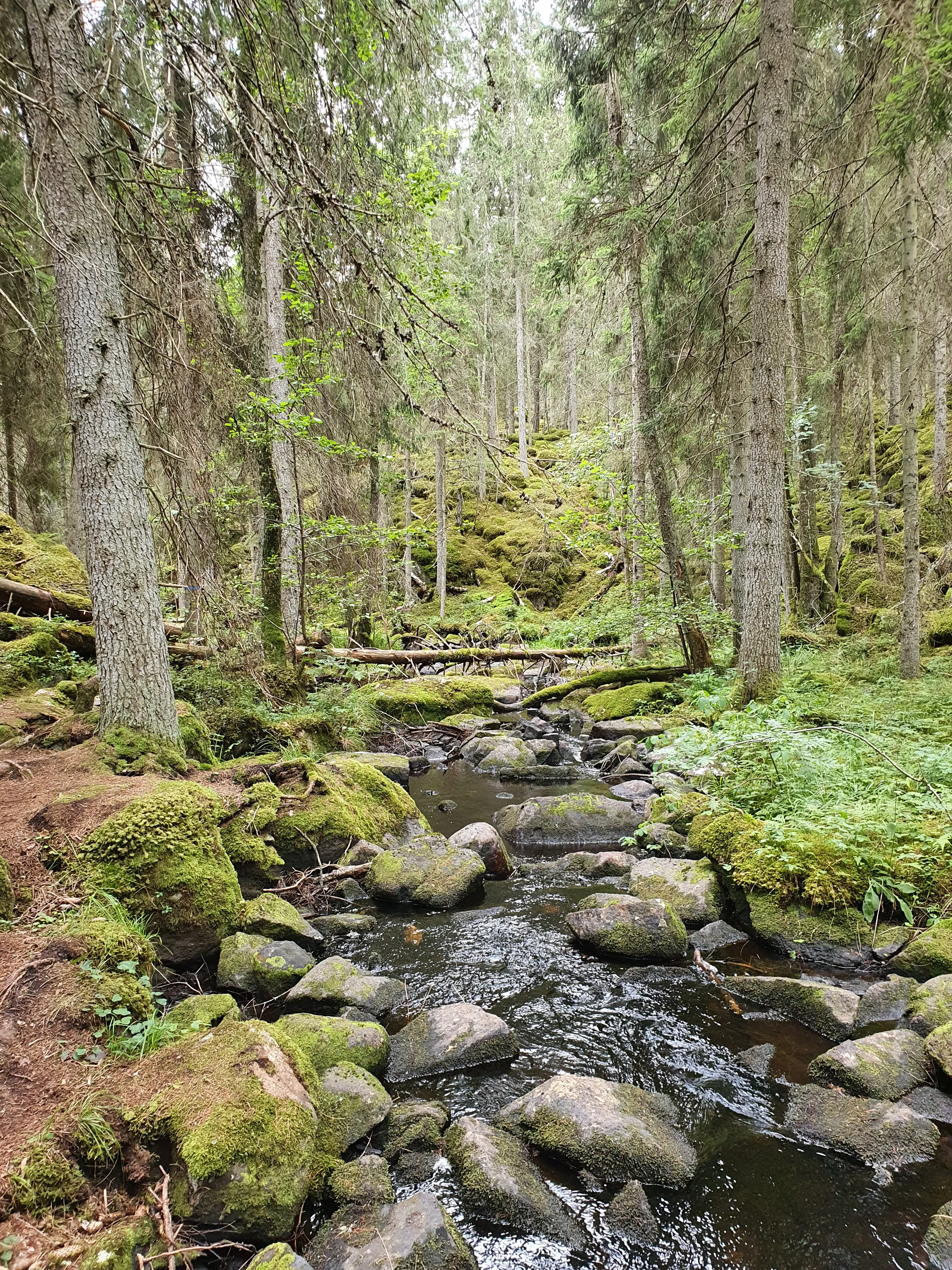 Je loopt in het ravijn over een smal paadje langs het riviertje, waarbij je onderweg over rotsen en bomen moet klimmen.