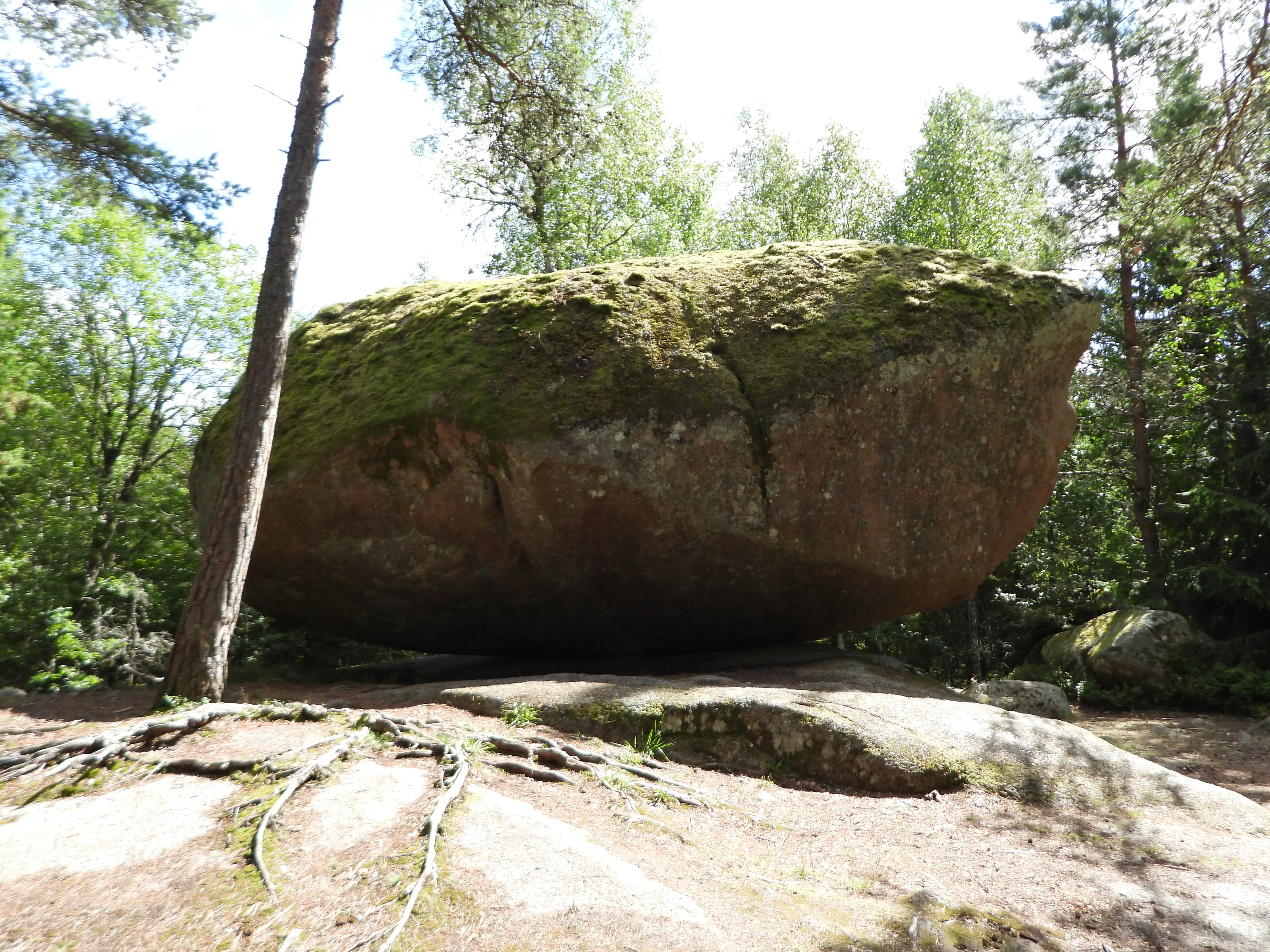 Tijdens de ijstijd zijn deze grote rotsen verplaatst en wanneer het ijs ging smelten zijn ze op hun puntige kant komen te staan en kunnen daardoor met de hand een paar centimeter bewogen worden.