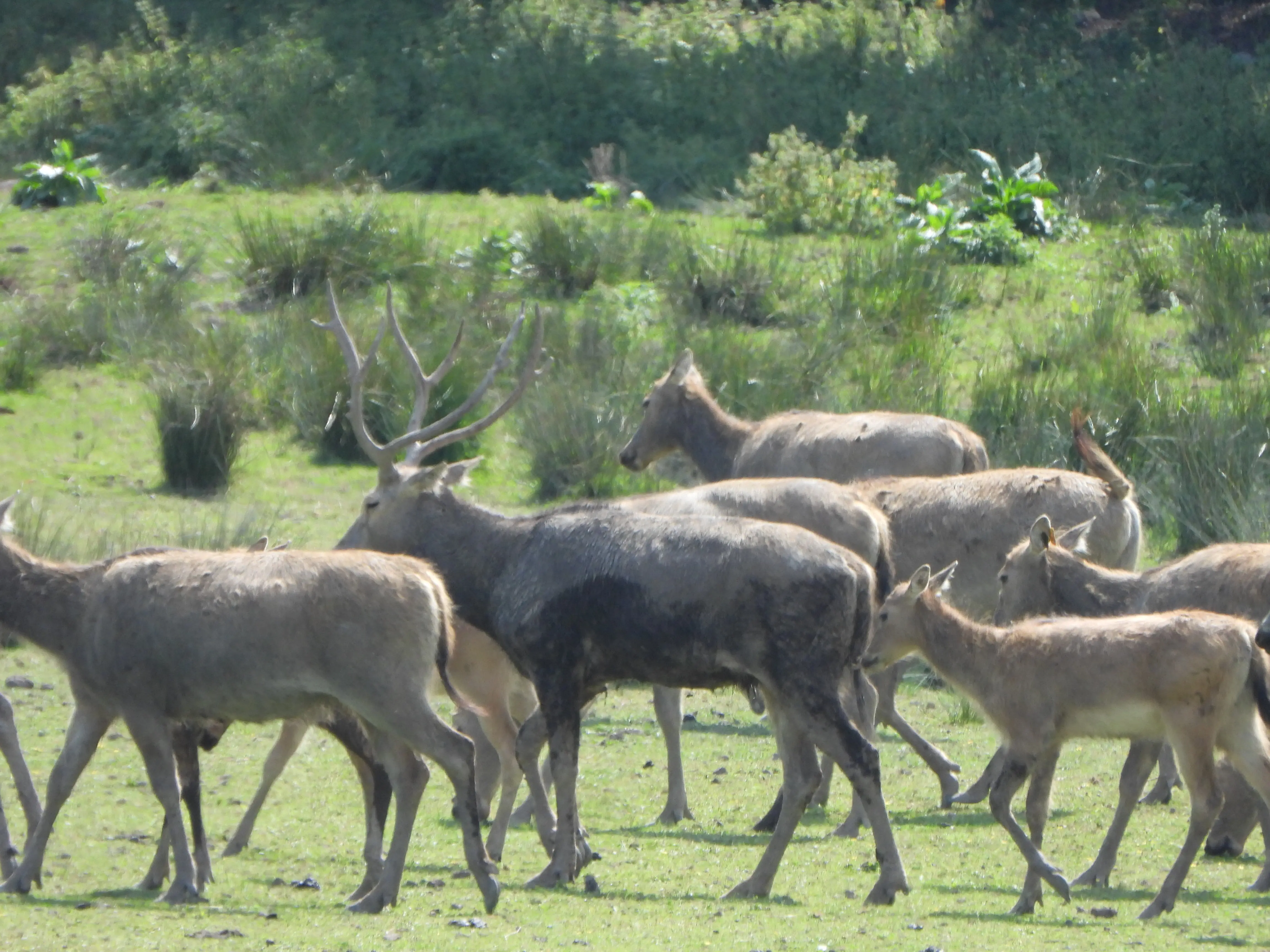 Terwijl we al weer op weg naar de uitgang zijn zien we in de verte nog een paar herten soorten.