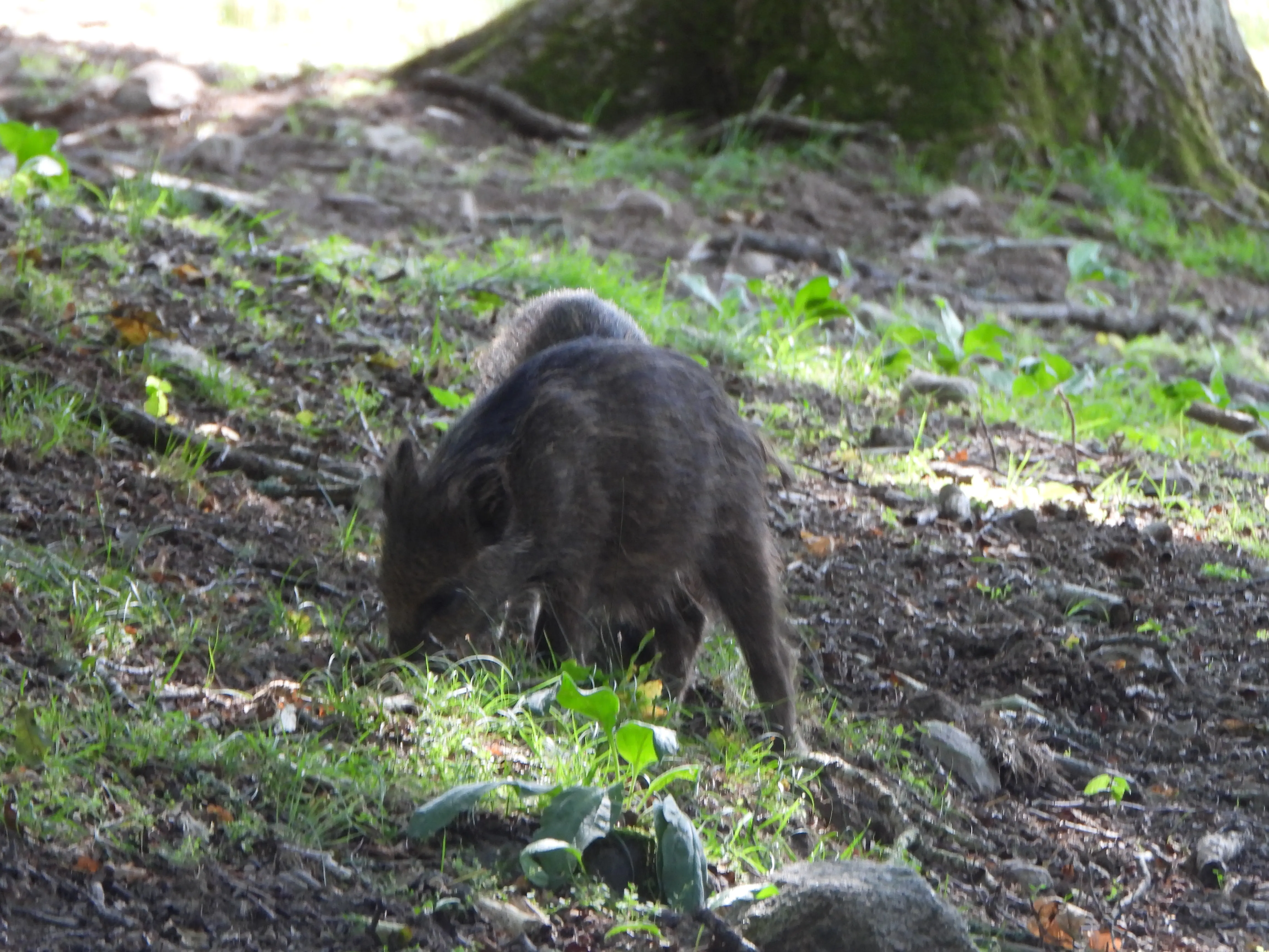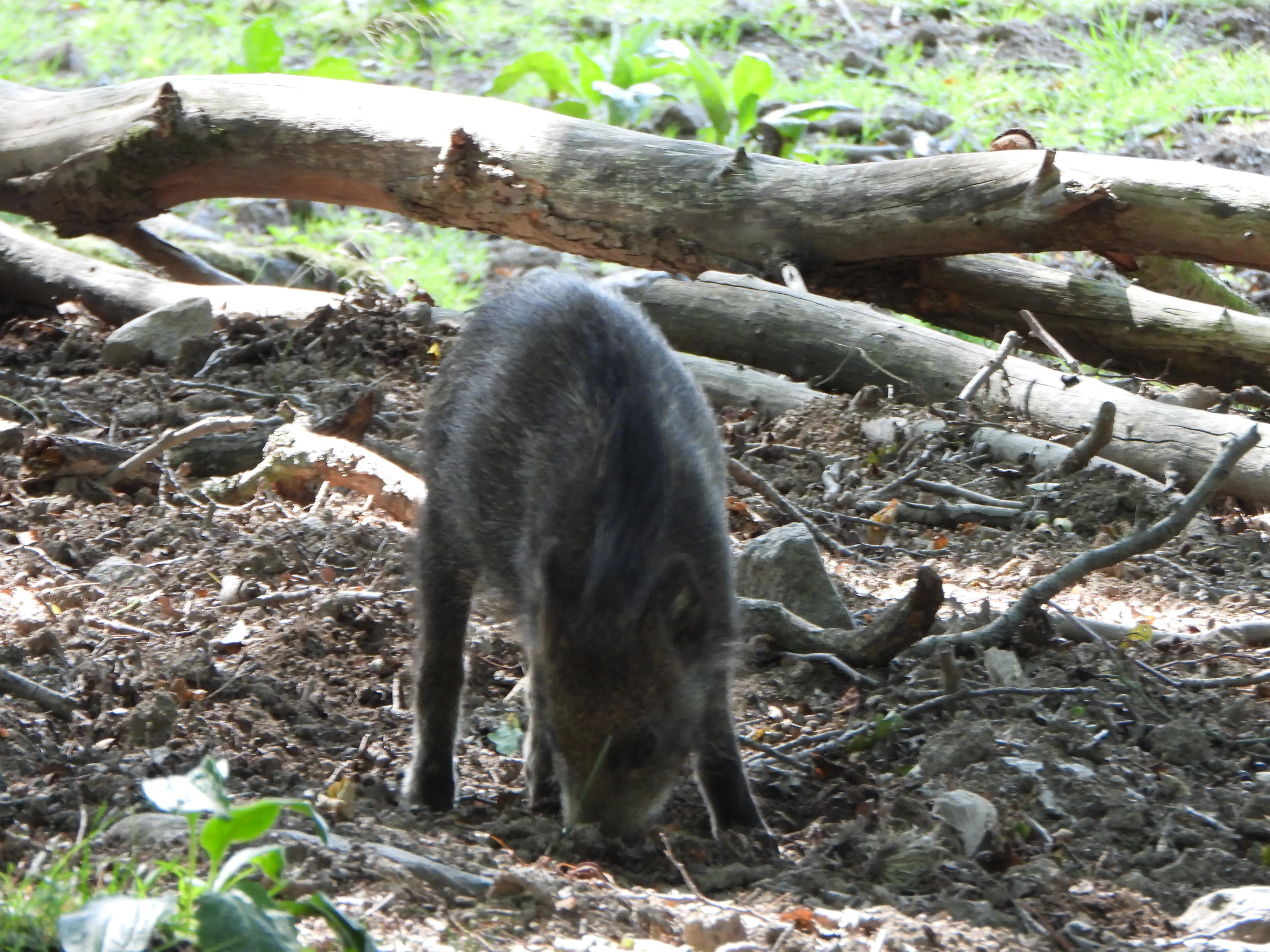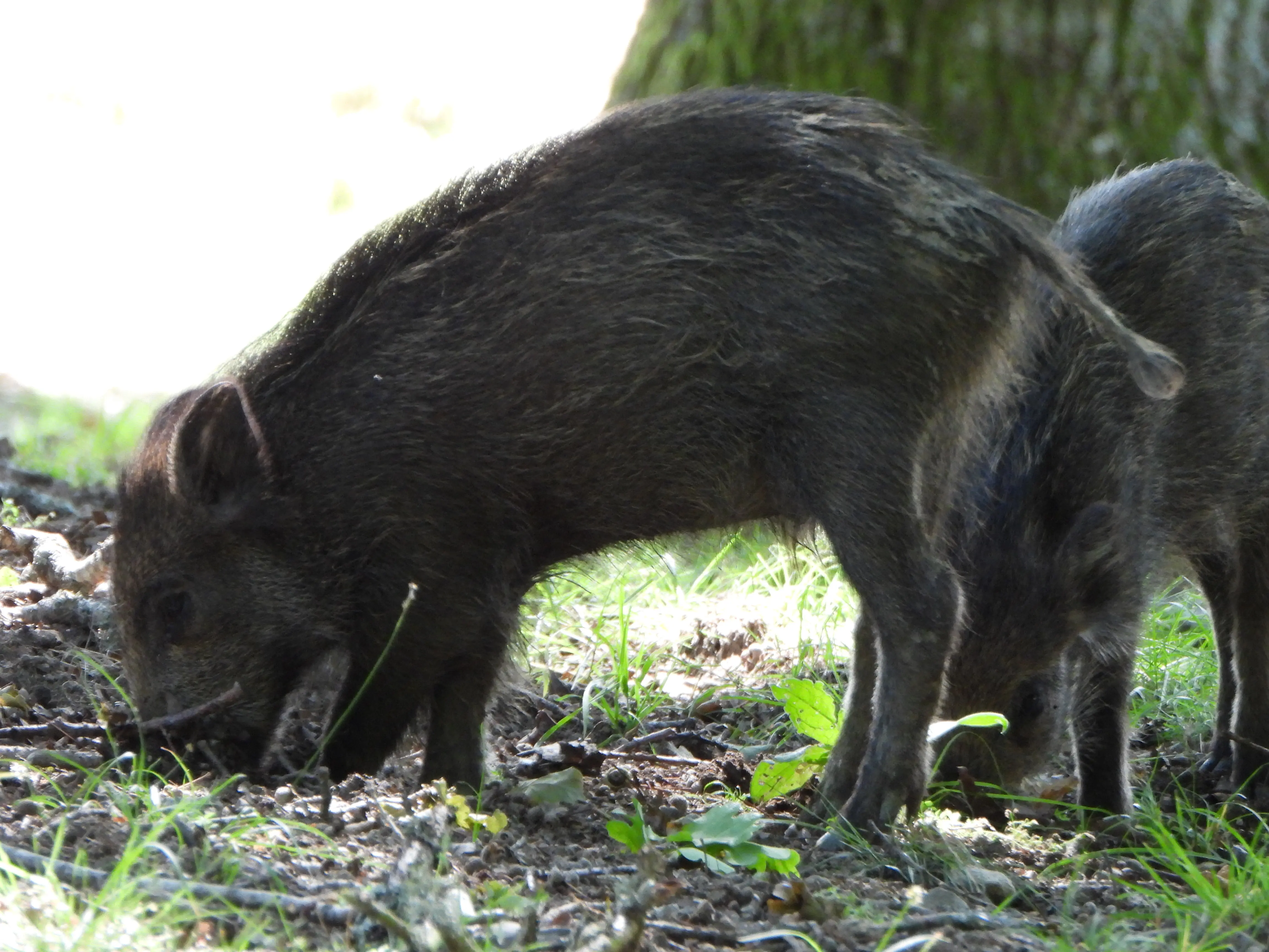Terwijl we verder rijden zien we in de schaduw wat bewegen en blijken het jonge zwijnen te zijn, vader en moeder zijn nergens te bekennen maar wij kunnen wel een leuke foto maken.