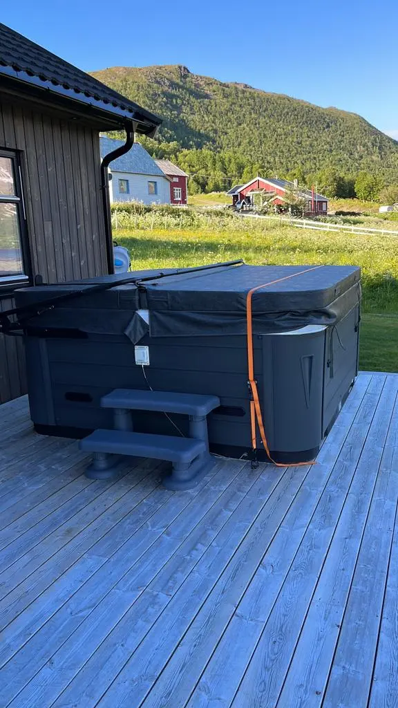 Laat in de avond komen we dan toch aan bij ons huisje, zeg maar een riante villa met alles erop en eraan. Een sauna, hottub, giga TV en de polis die de hele dag hier op het grasveld rondrijdt.