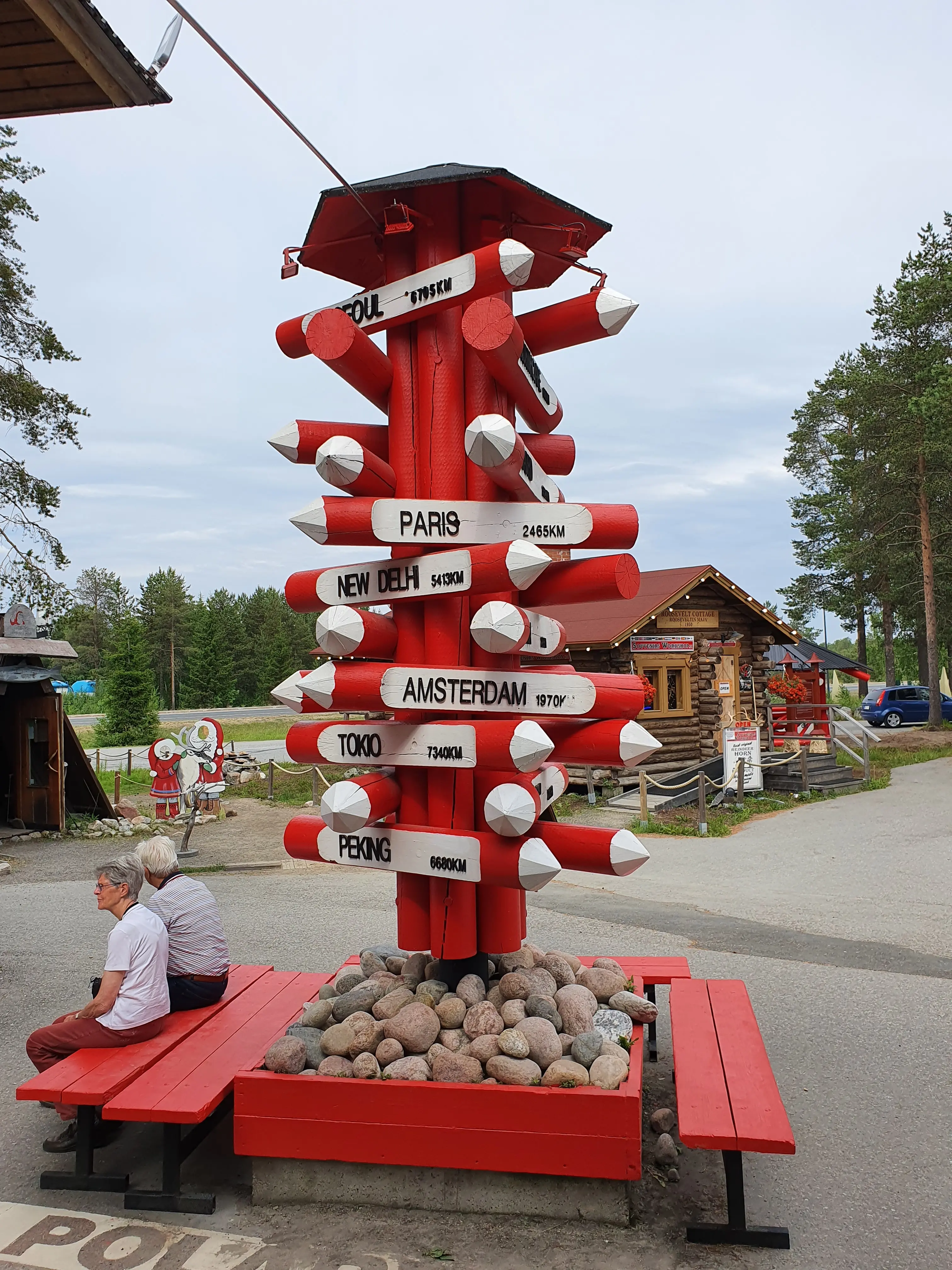 Als we in Rovaniemi uitstappen zijn er geen muggen meer, wat een opluchting. We kijken onze ogen uit in het commerciële dorp waar de kerstman zou wonen. Het ligt ook precies op de Arctic Circle dus dat laten ze duidelijk zien.