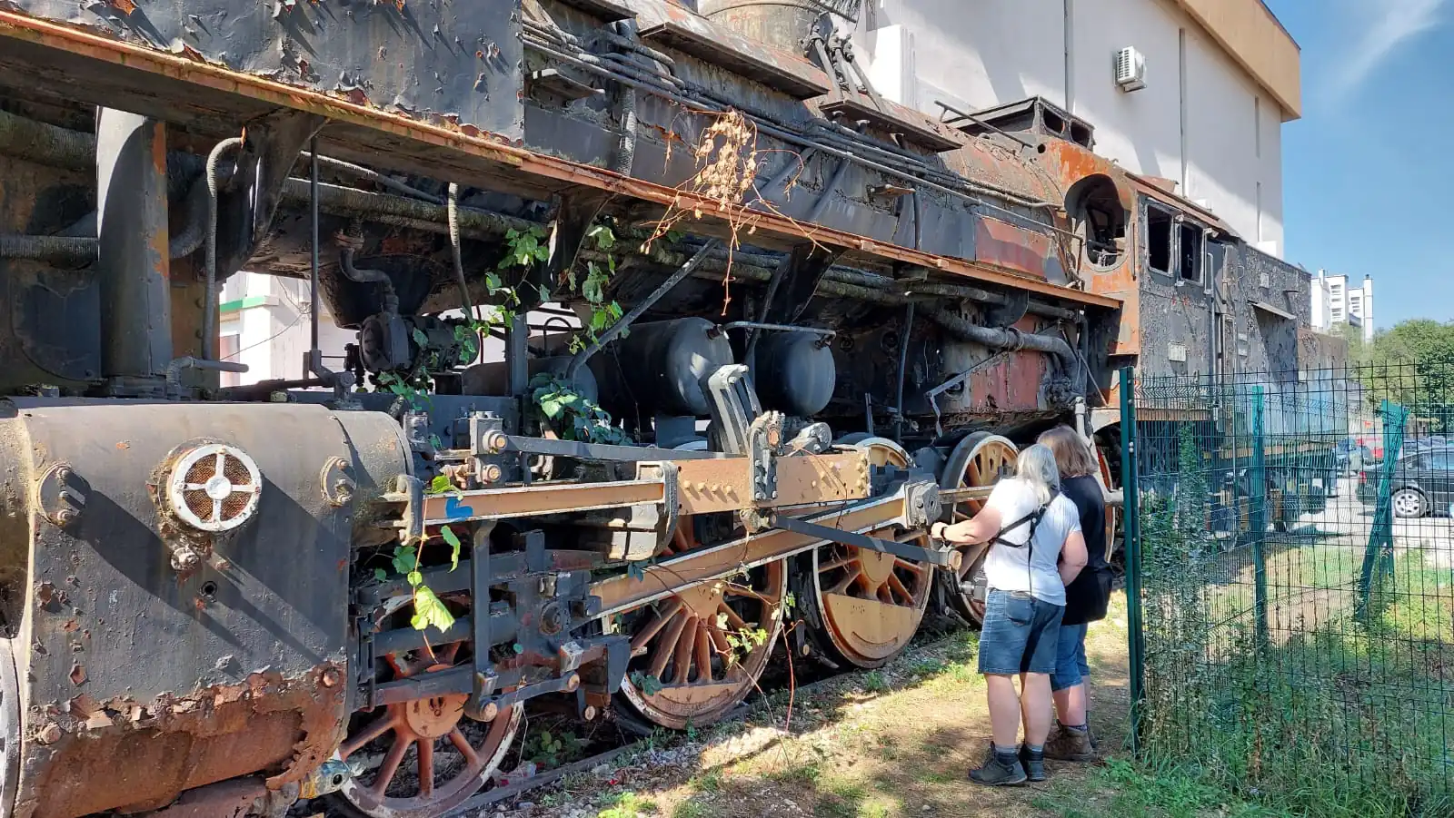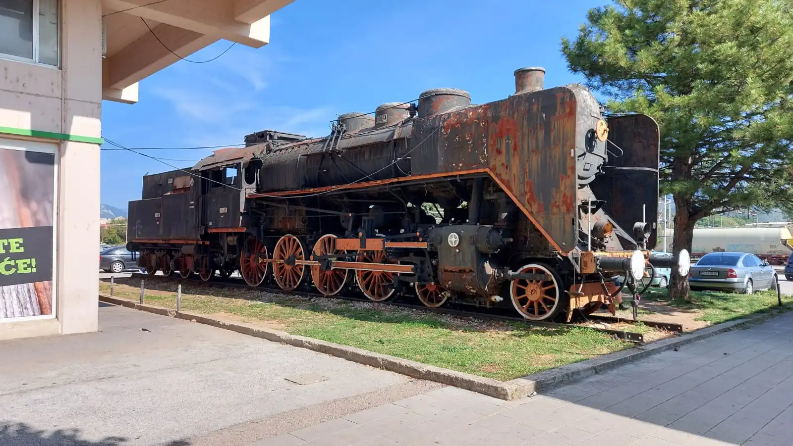 Als we bij Knin aankomen zien we vanuit de verte een groot Fort op de berg staan, maar voordat we daar naar toe kunnen rijden ziet Peter vanuit zijn ooghoek een oude stoomtrein. We parkeren daar even vlakbij en stappen uit, er blijkt ook nog een cache te liggen dus 2 vliegen in een klap.