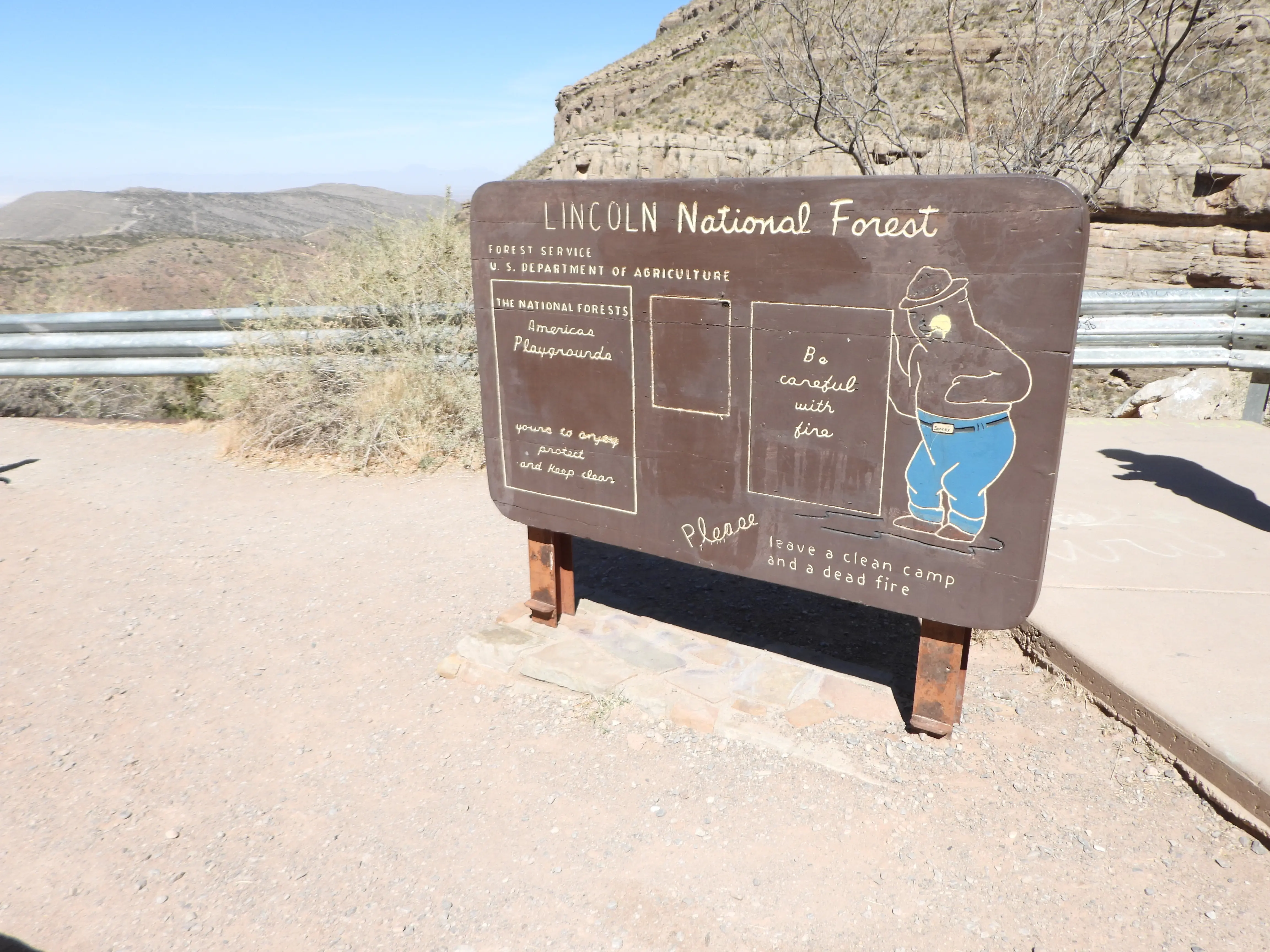 Hier rijden we ook door een skigebied helaas geen sneeuw meer maar wel heel leuk om te zien, we zijn dringend op zoek naar een parkeerplaats van Rob en ik moeten heel nodig naar de wc. Stoppen met zo’n grote camper blijft toch wel een dingetje, na enige mijlen zien we dan toch eindelijk een plek waar gestopt kan worden en heerlijk zo’n wc die je bij je hebt. De wegen zijn hier wel wat kronkeliger met scherpere bochten en afdalingen van 6% maar ze blijven Amerikaans breed. Halverwege de route zou een uitzichtpunt zijn waarbij je naar een waterval kunt lopen. Het uitzichtpunt was prima te vinden maar het pad naar de waterval liet wat te wensen over. Heel steil en klimmen en klauteren over allerlei rotsen, we hebben maar geen poging gewaagd.