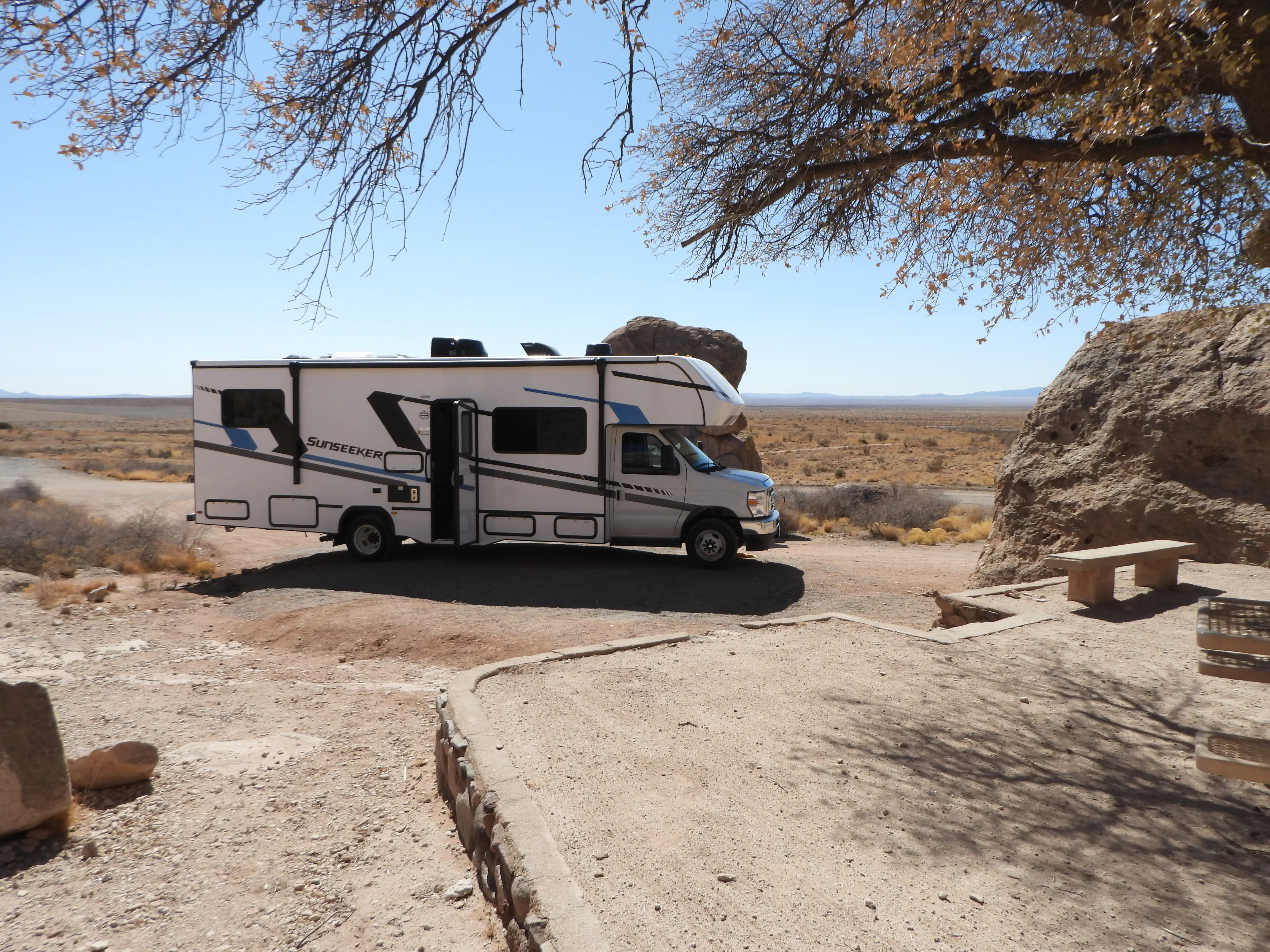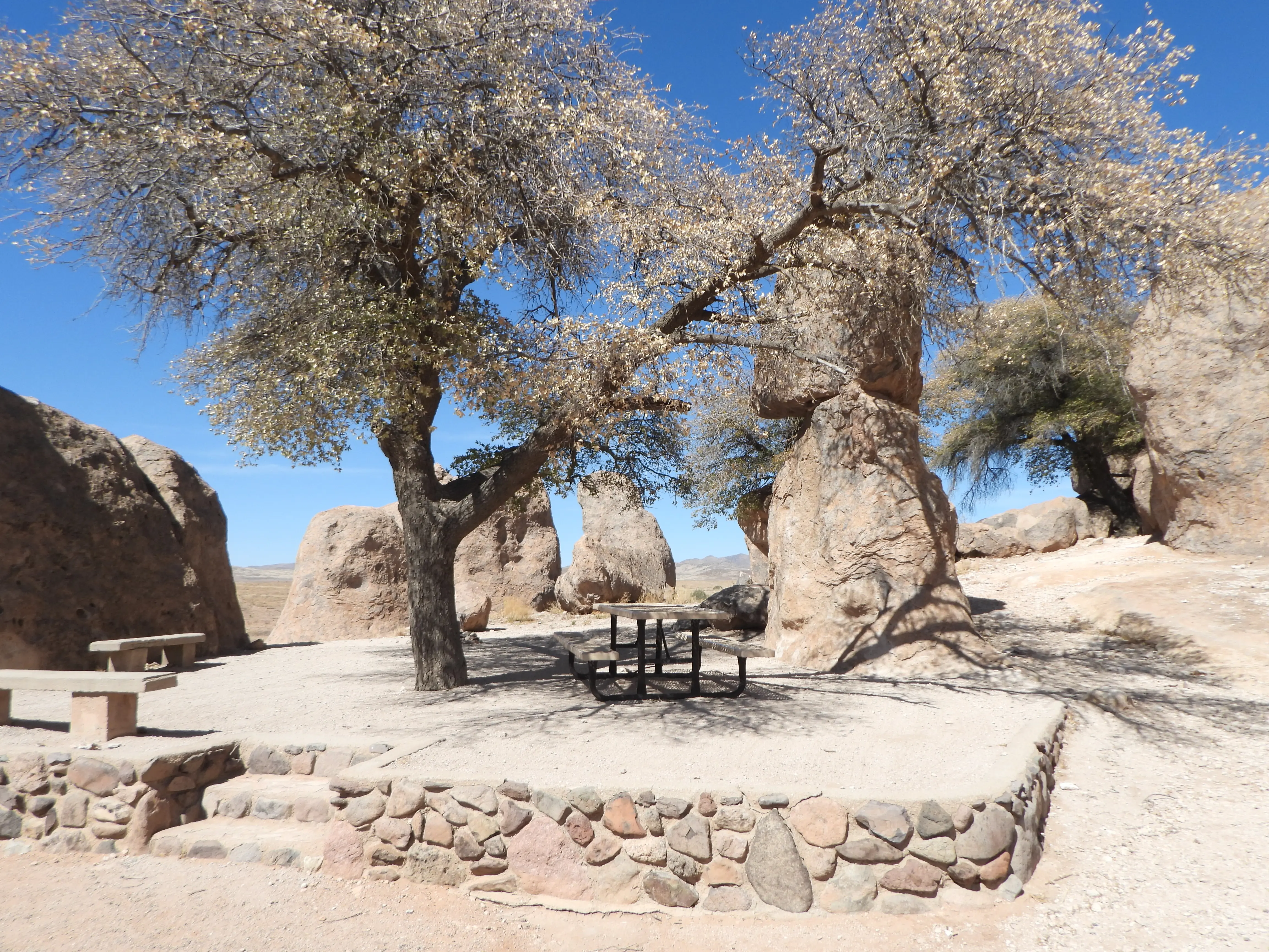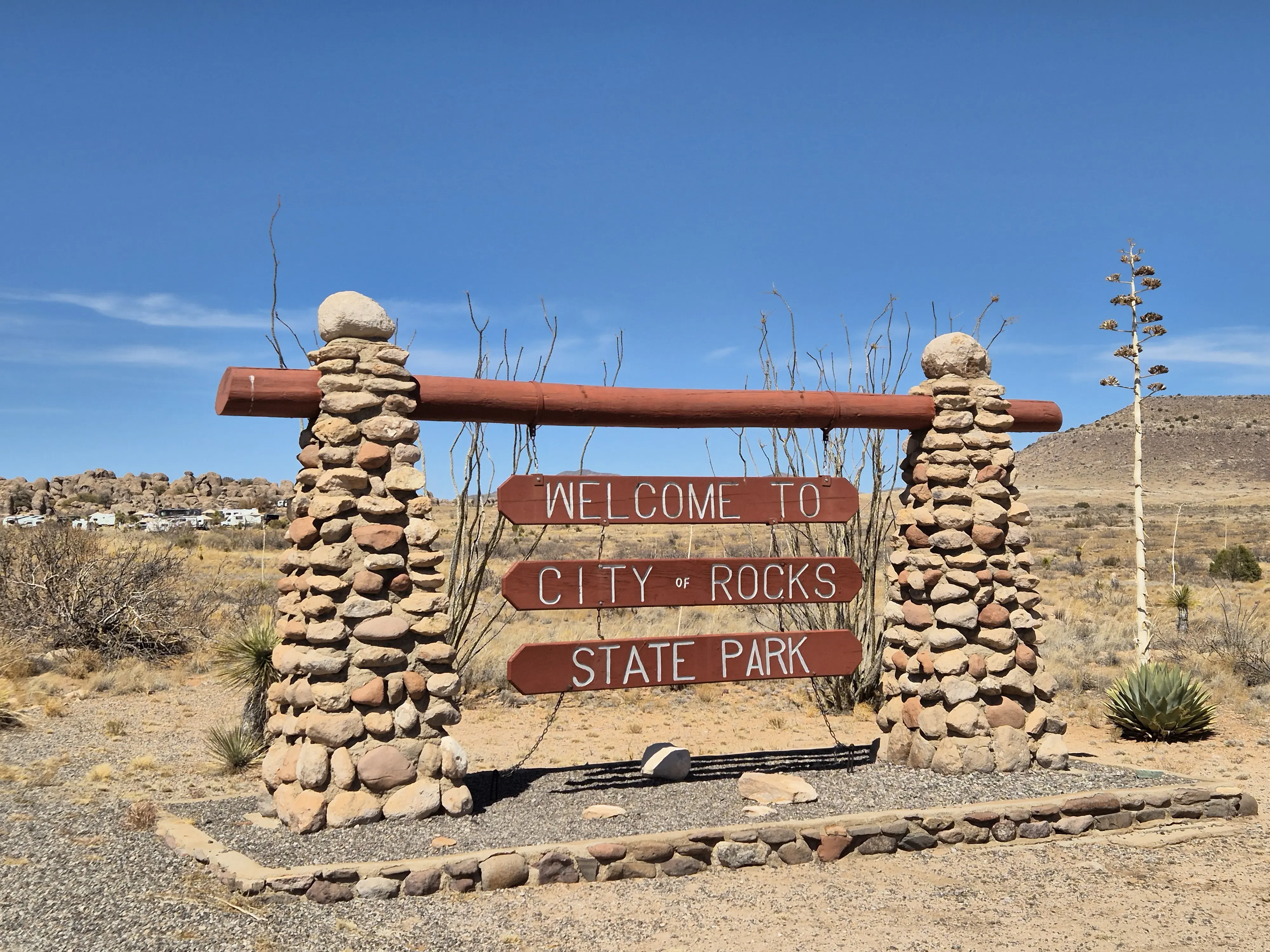 Vandaag doen we weer lekker rustig aan de Camping City of Rocks ligt hier niet zo ver vandaan en we moeten dus wat tijd overbruggen om daar niet te vroeg aan te komen. Bijna elke dag controleren we de olie soms is de motor al gestart en ja dan houdt het op, maar vandaag is het gelukt om het voor die tijd te doen. Waar wij ons ook over verbazen zijn de grote bus campers die hier rondrijden, de 9 van de 10 keer er ook nog een auto achter hebben hangen, en deze had daar zelfs nog een fietsendrager op met fietsen. Dat moet je in Nederland eens proberen.