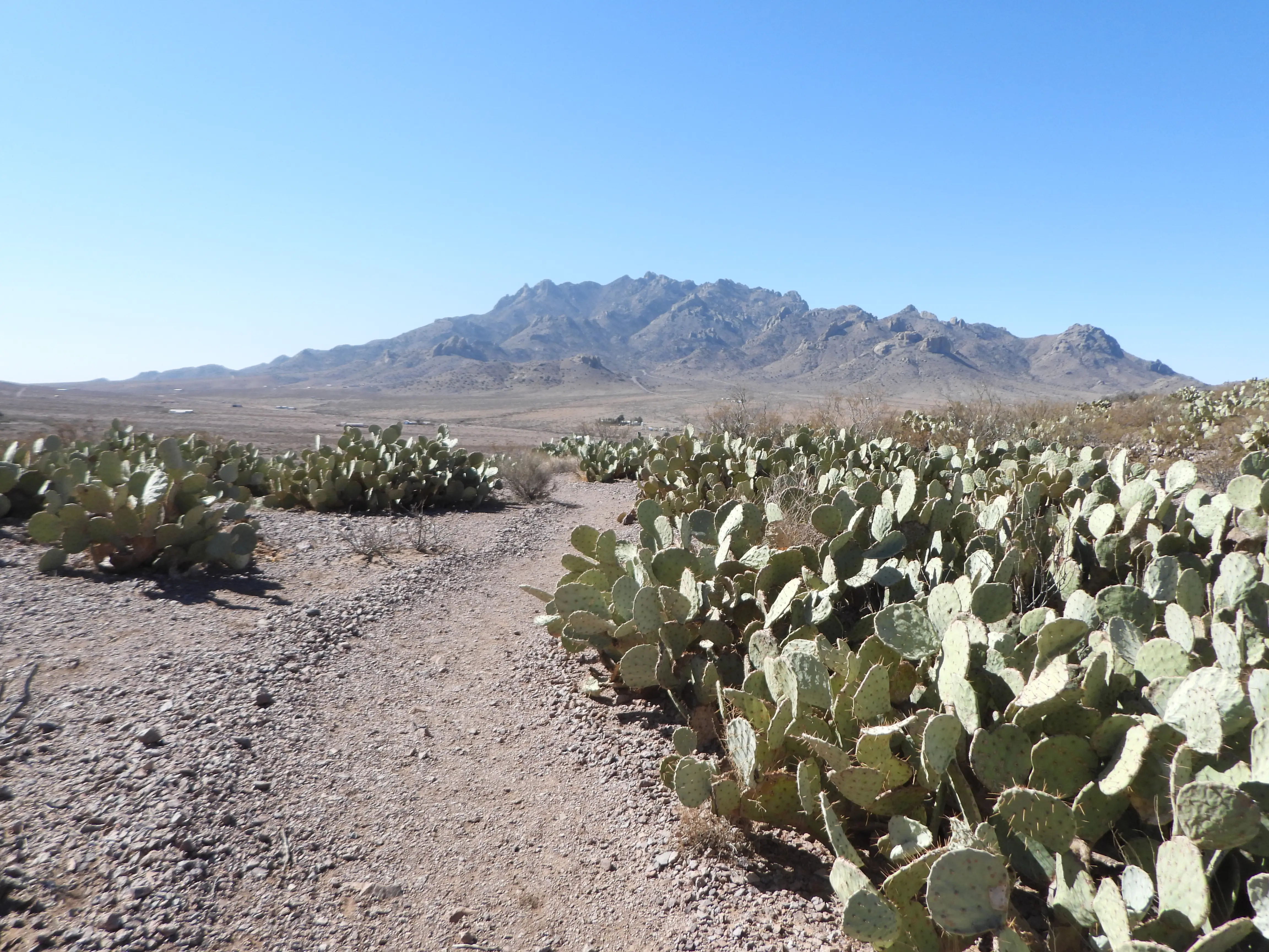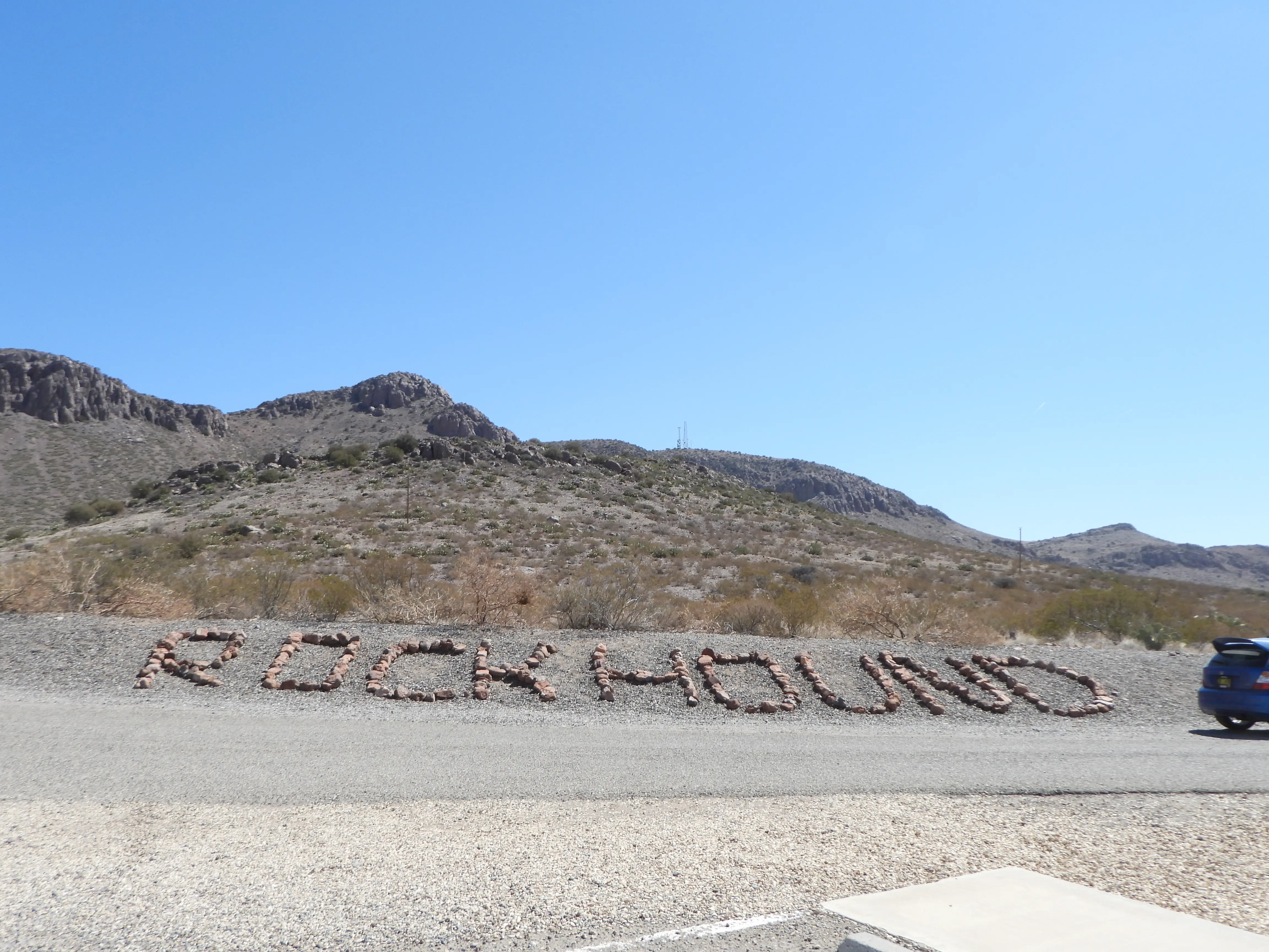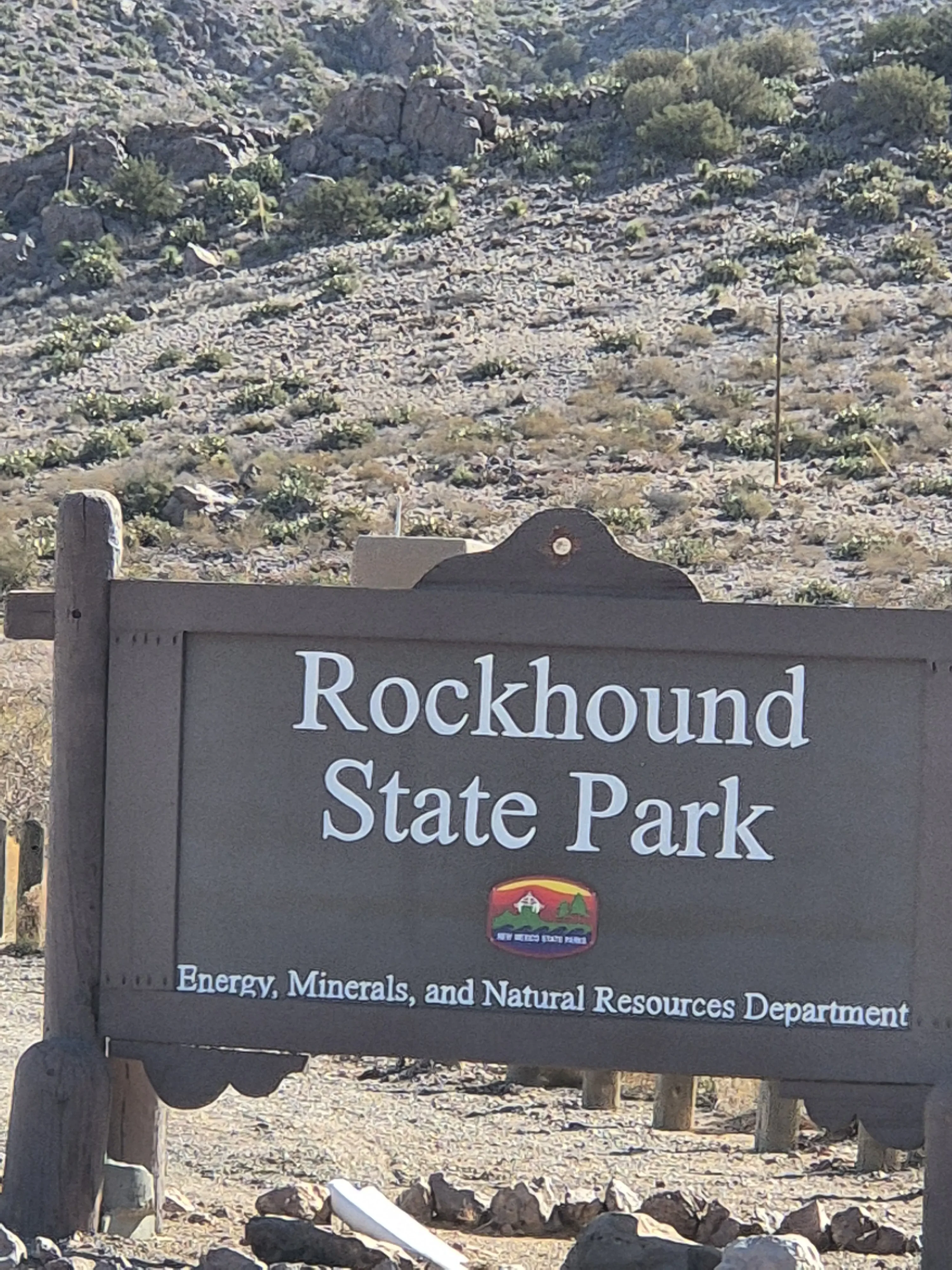 Ons eerste doel is Rockhound State Park dit is een klein park waar je een korte wandeling kunt maken en waar ook een paar caches liggen. Als we het visitor center binnenlopen worden we aangesproken door een oude mevrouw, ze geeft ons een plattegrond met de routes, waarschijnlijk nog uit het tijdperk Matrix printer. En een uitleg hoe te lopen en dat we vooral van het pad af mogen om stenen te zoeken. Iedereen mag 5 stenen meenemen dat is nog eens een deal normaal gesproken moet je en op het pad blijven en mag je vooral niks meenemen.