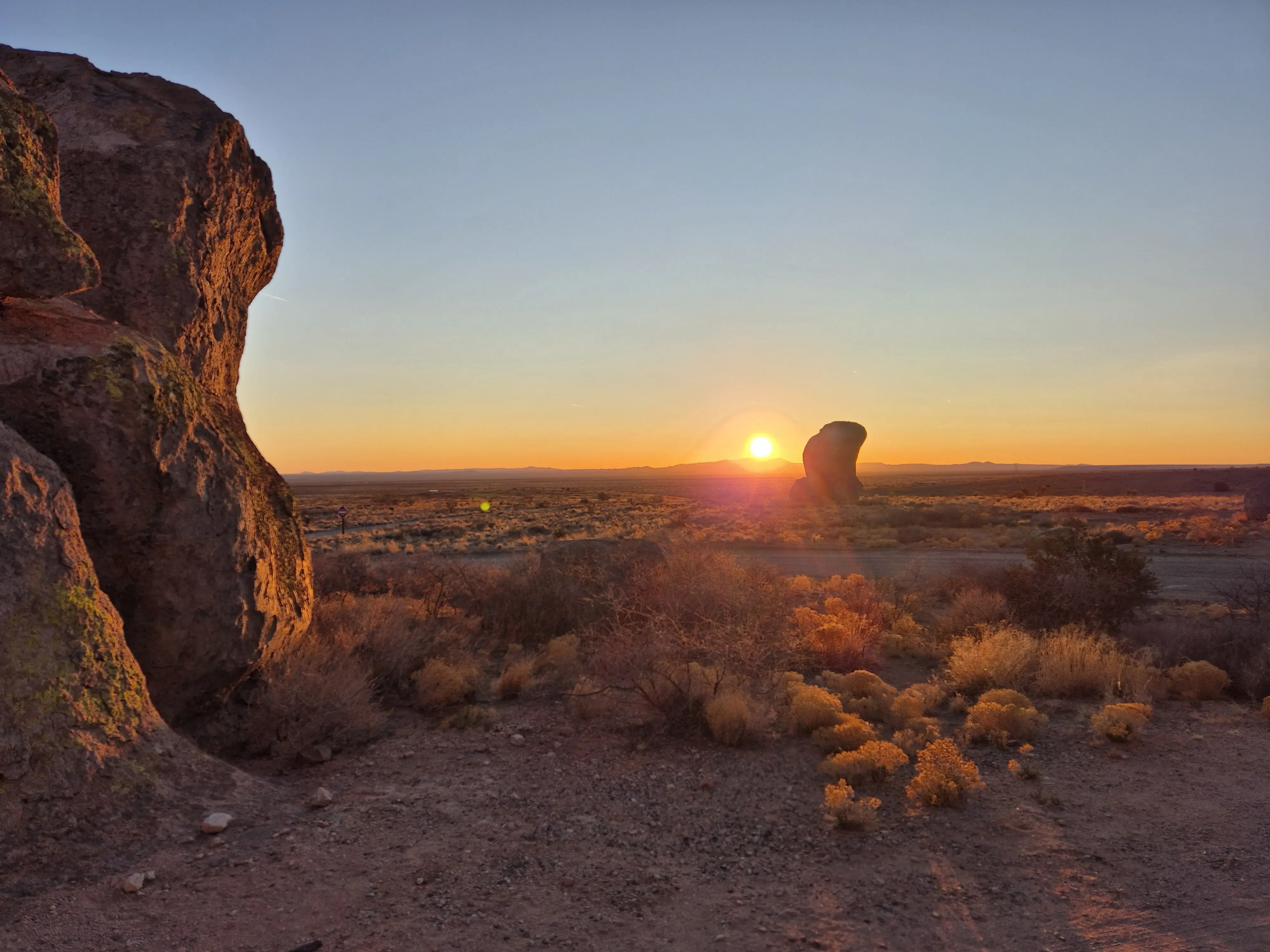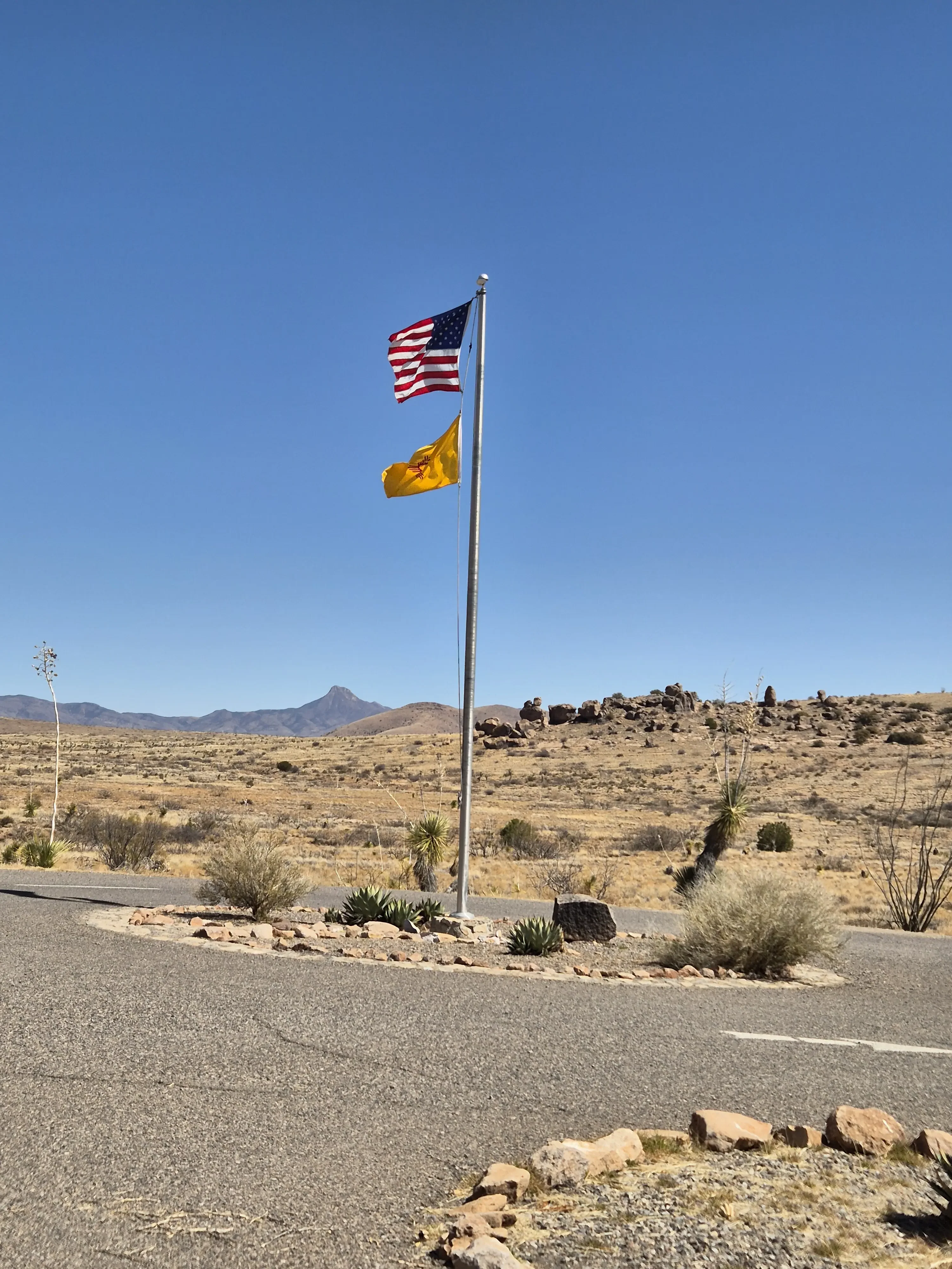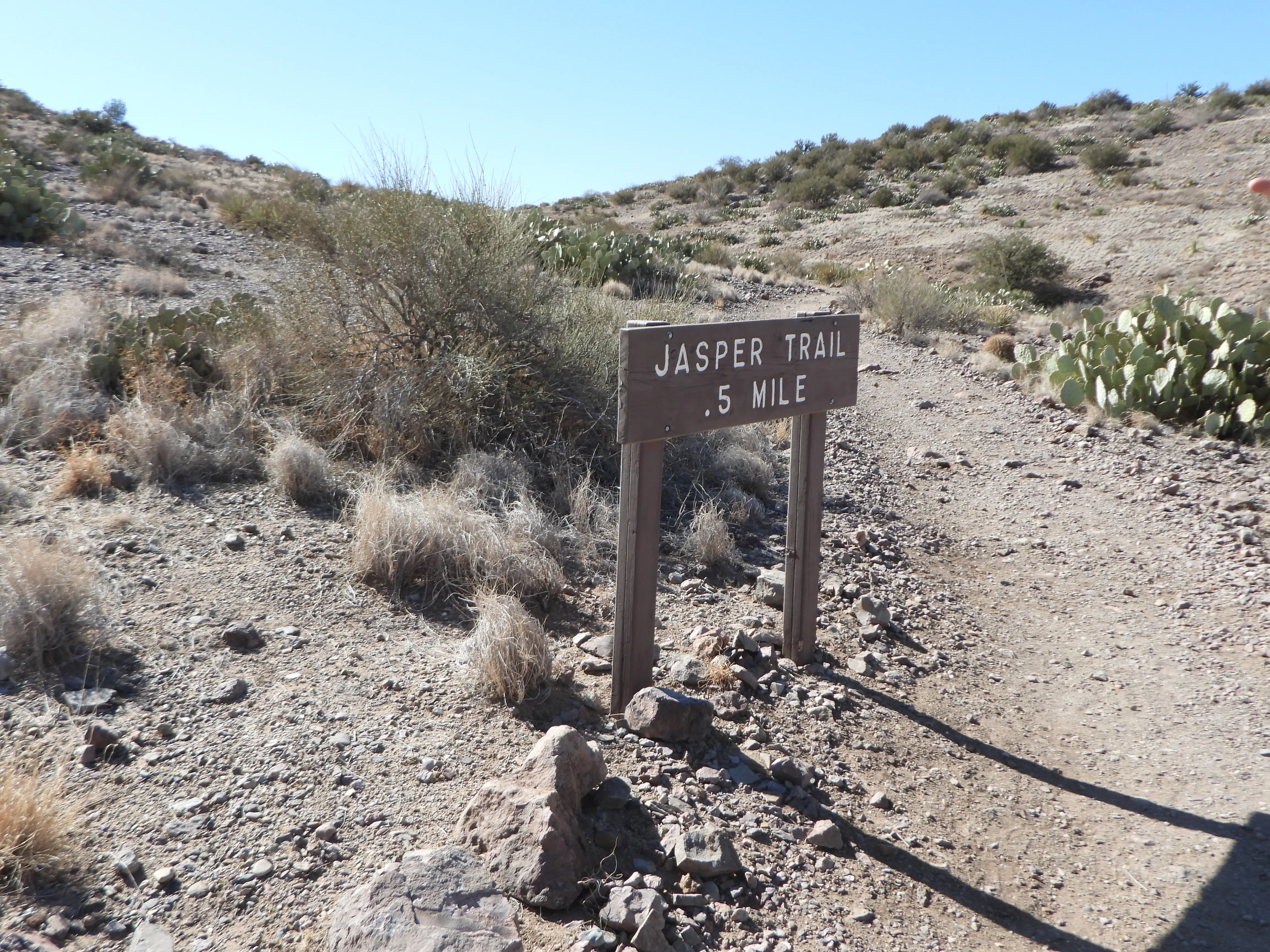 Ons eerste doel is Rockhound State Park dit is een klein park waar je een korte wandeling kunt maken en waar ook een paar caches liggen. Als we het visitor center binnenlopen worden we aangesproken door een oude mevrouw, ze geeft ons een plattegrond met de routes, waarschijnlijk nog uit het tijdperk Matrix printer. En een uitleg hoe te lopen en dat we vooral van het pad af mogen om stenen te zoeken. Iedereen mag 5 stenen meenemen dat is nog eens een deal normaal gesproken moet je en op het pad blijven en mag je vooral niks meenemen.