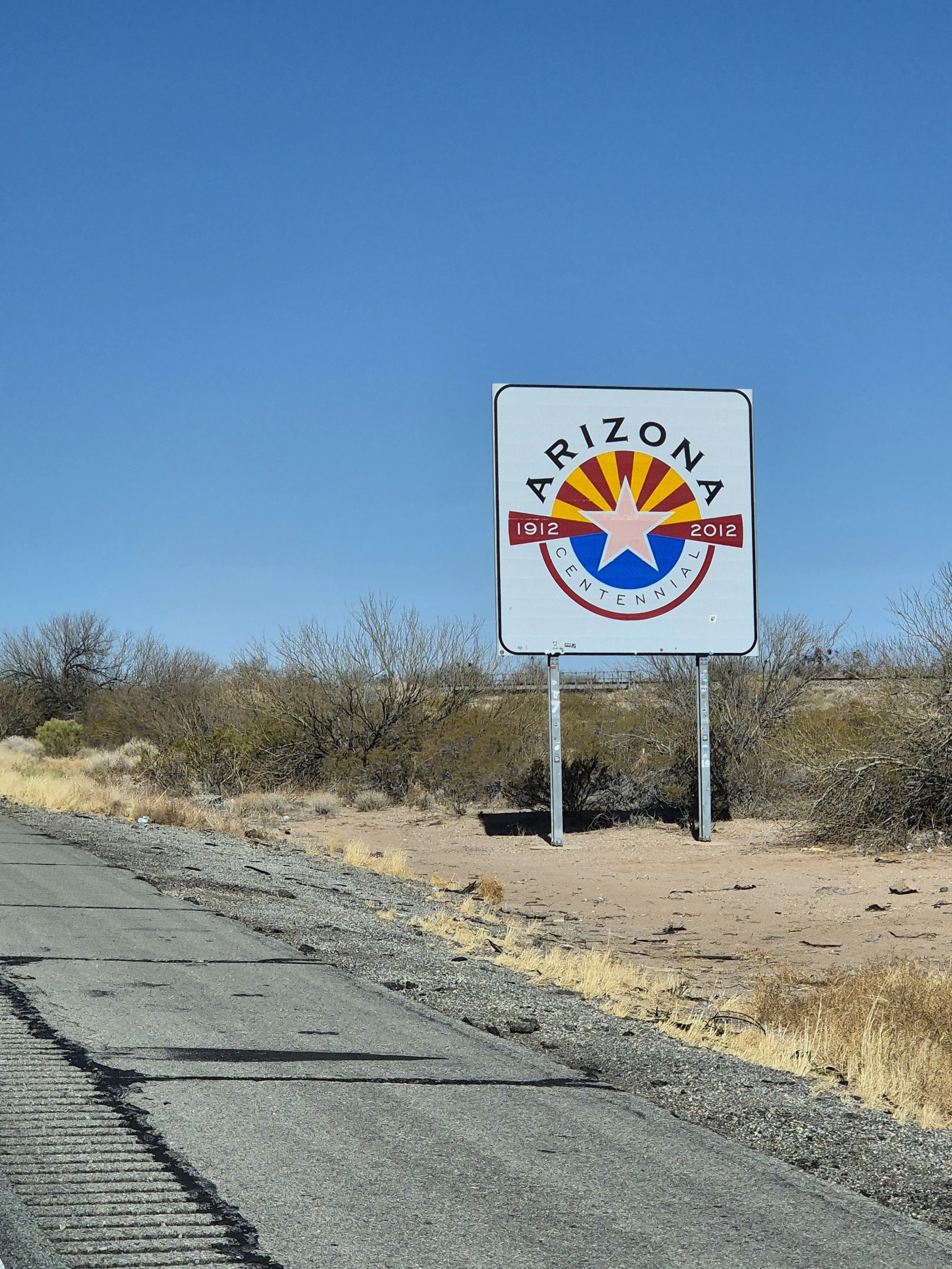 Wat een geluk we mogen nu de snelweg op daar zijn we na onze ervaring hiervoor wel heel blij mee. Na een aantal kilometers gaan we vandaag de grens met Arizona over, weer een staat erbij.