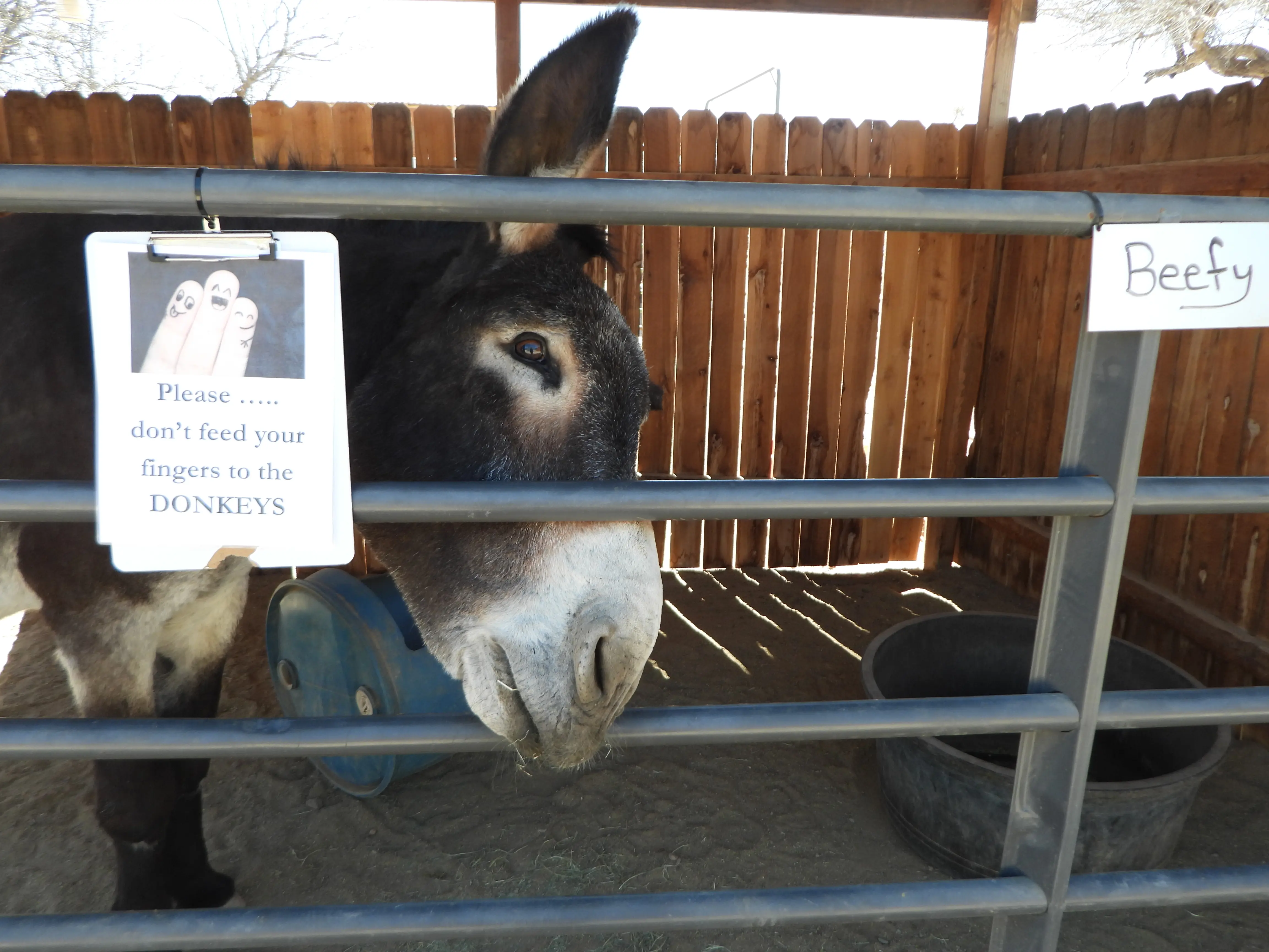 We lopen een rondje maken een hoop foto’s lezen de geschiedenis van die ezeltjes maar gaan dan gauw weer naar de camper terug. Het is inmiddels loei heet geworden en dat merken we meteen. We lunchen in de camper voor we gaan rijden, en gelukkig komen we op de terugweg op dit zandpad geen tegenliggers tegen.
