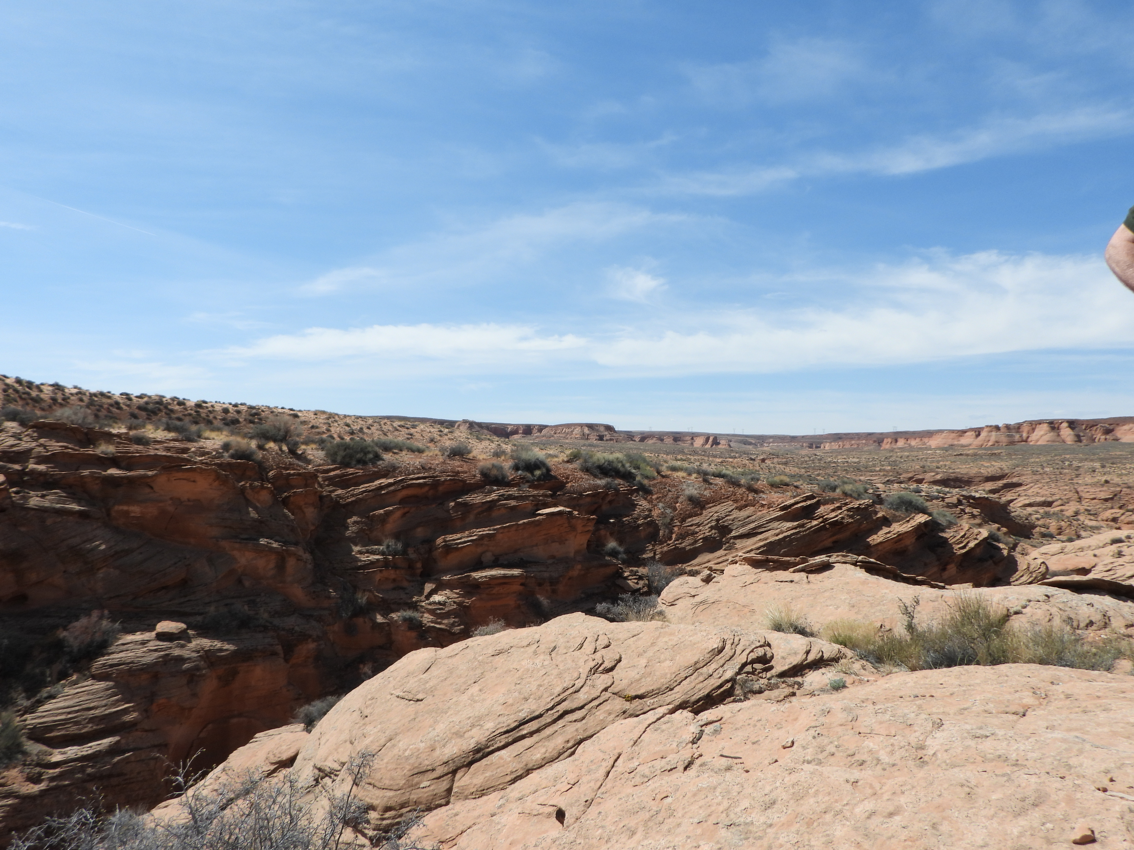 We genieten van de omgeving hier en maken prachtige foto’s en ook hier verteld de Navojo gids leuke en leerzame verhalen over zijn voorvaders. Veel te snel zijn we bij het eind en moeten we een heel stuk omhoog klimmen. Gelukkig staat de bus niet heel ver weg en start hij ook nog, we hobbelen dezelfde weg weer terug. We hebben het overleefd en houden een paar hele mooie foto’s over aan dit avontuur.