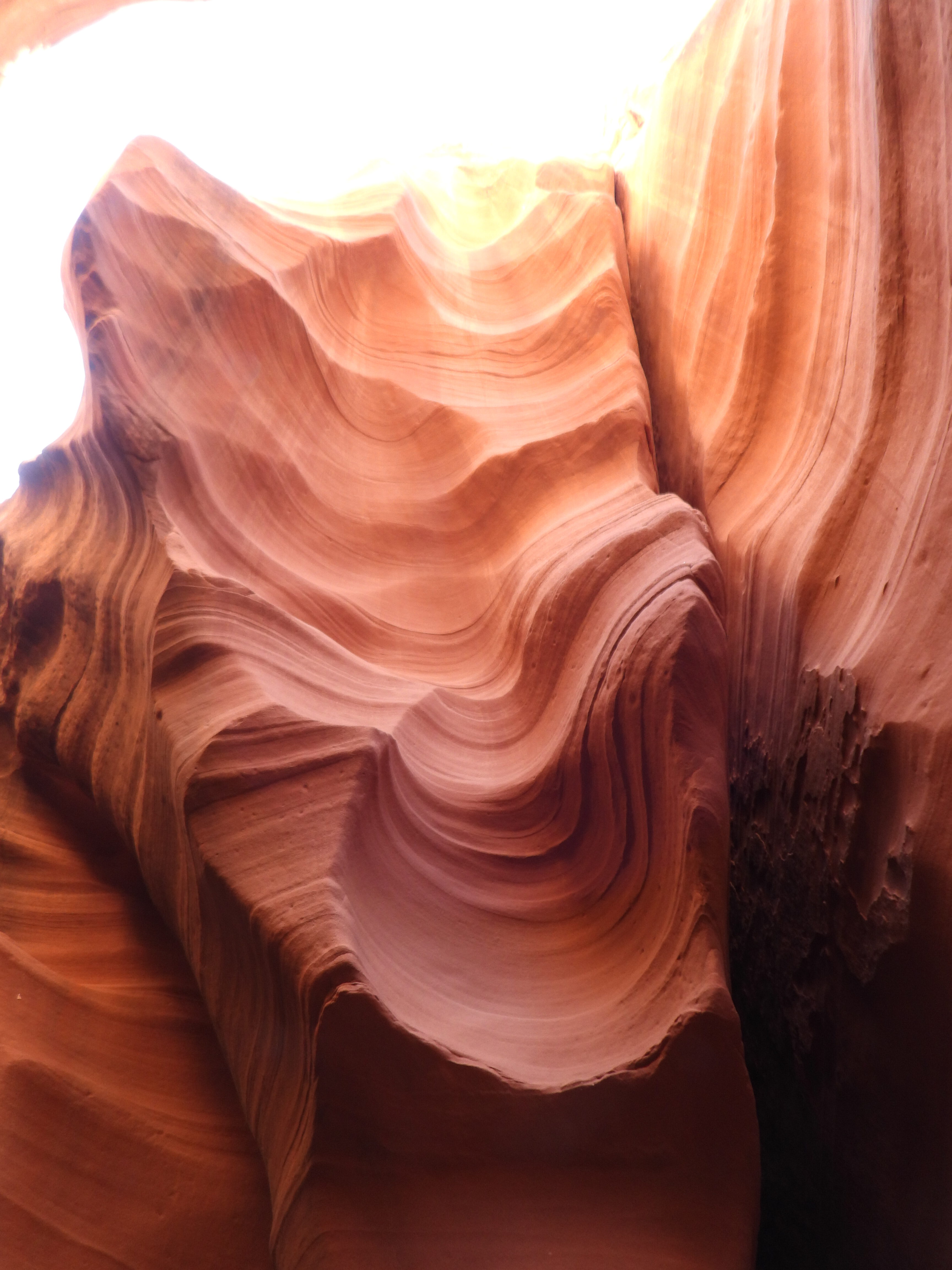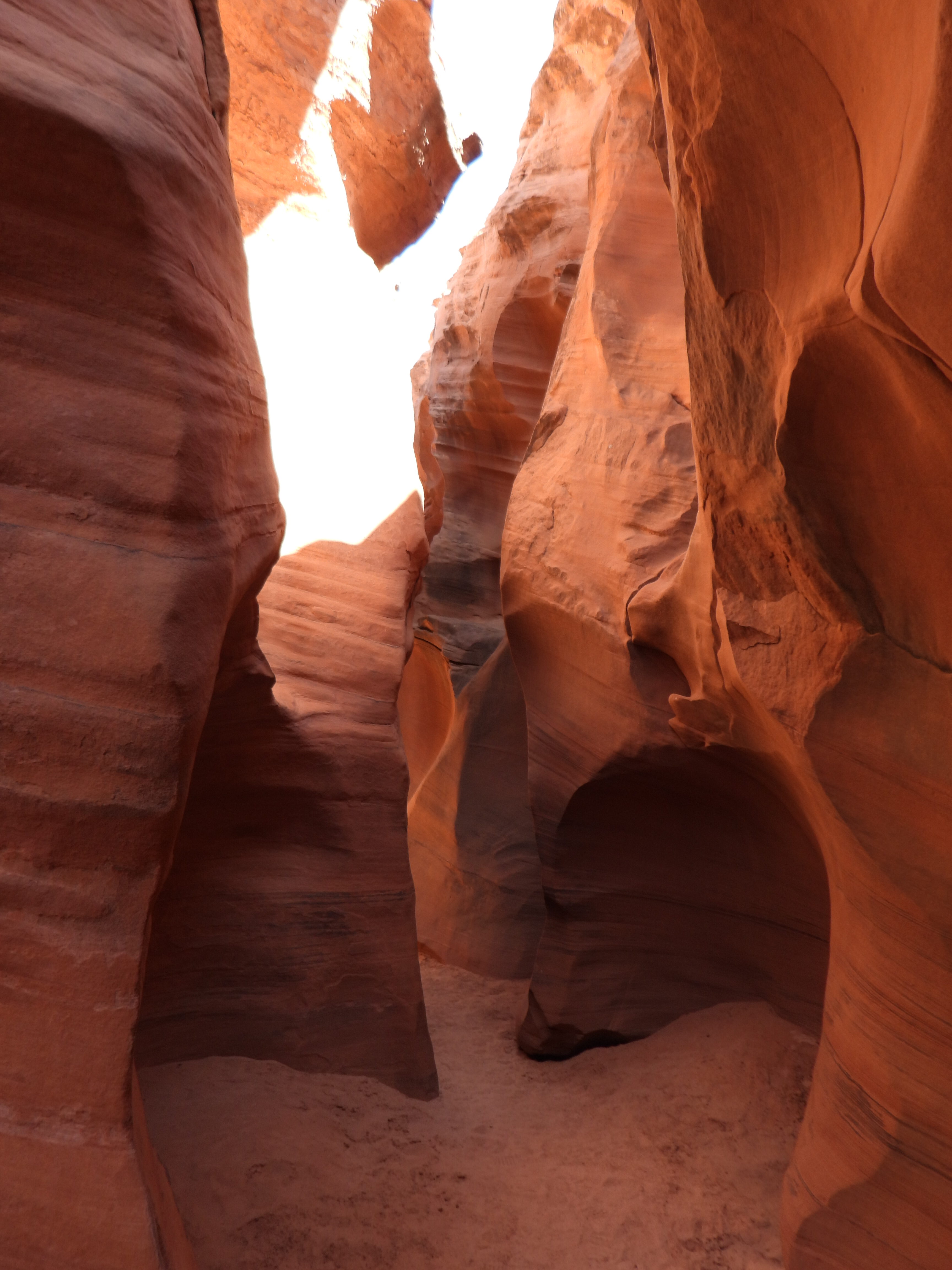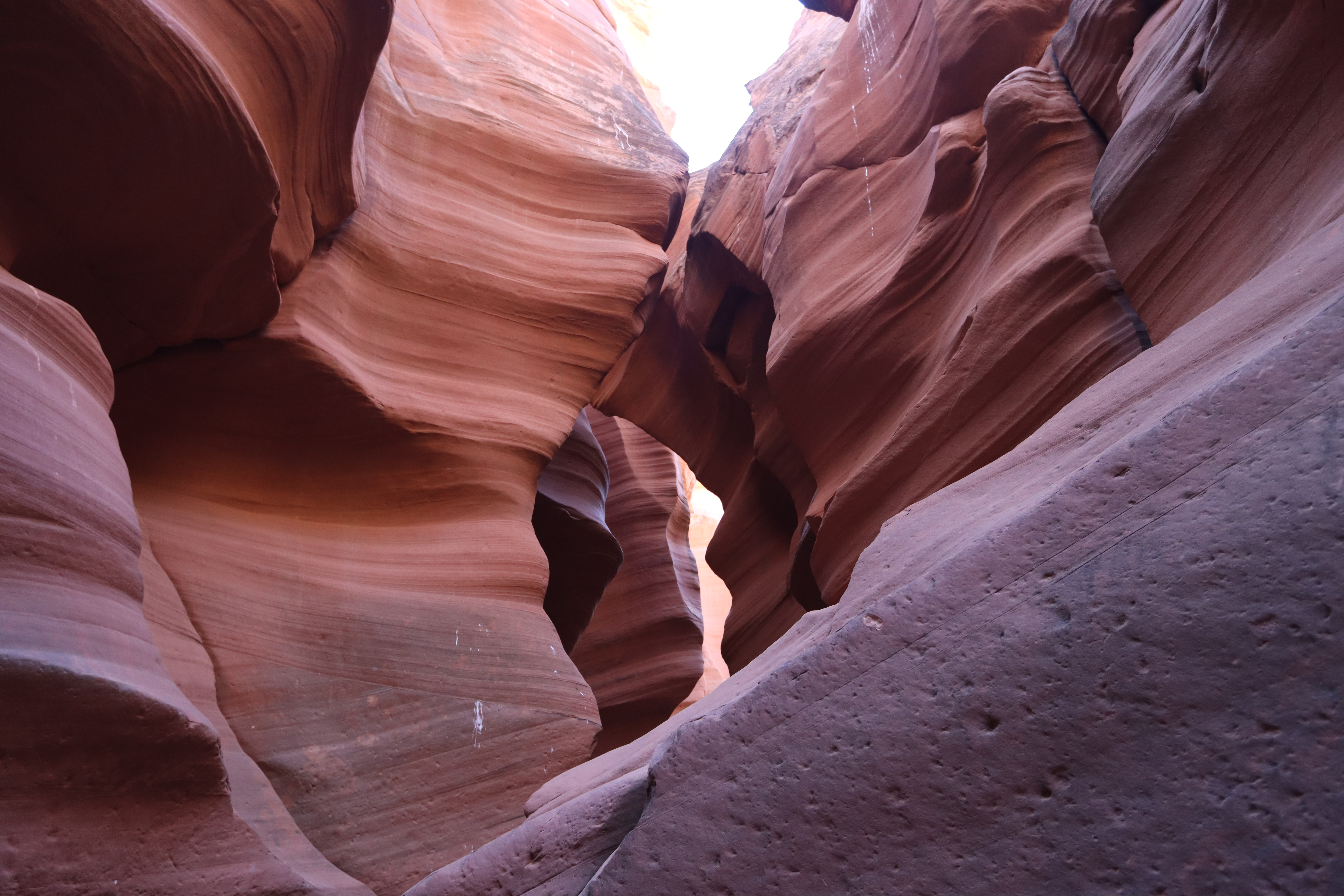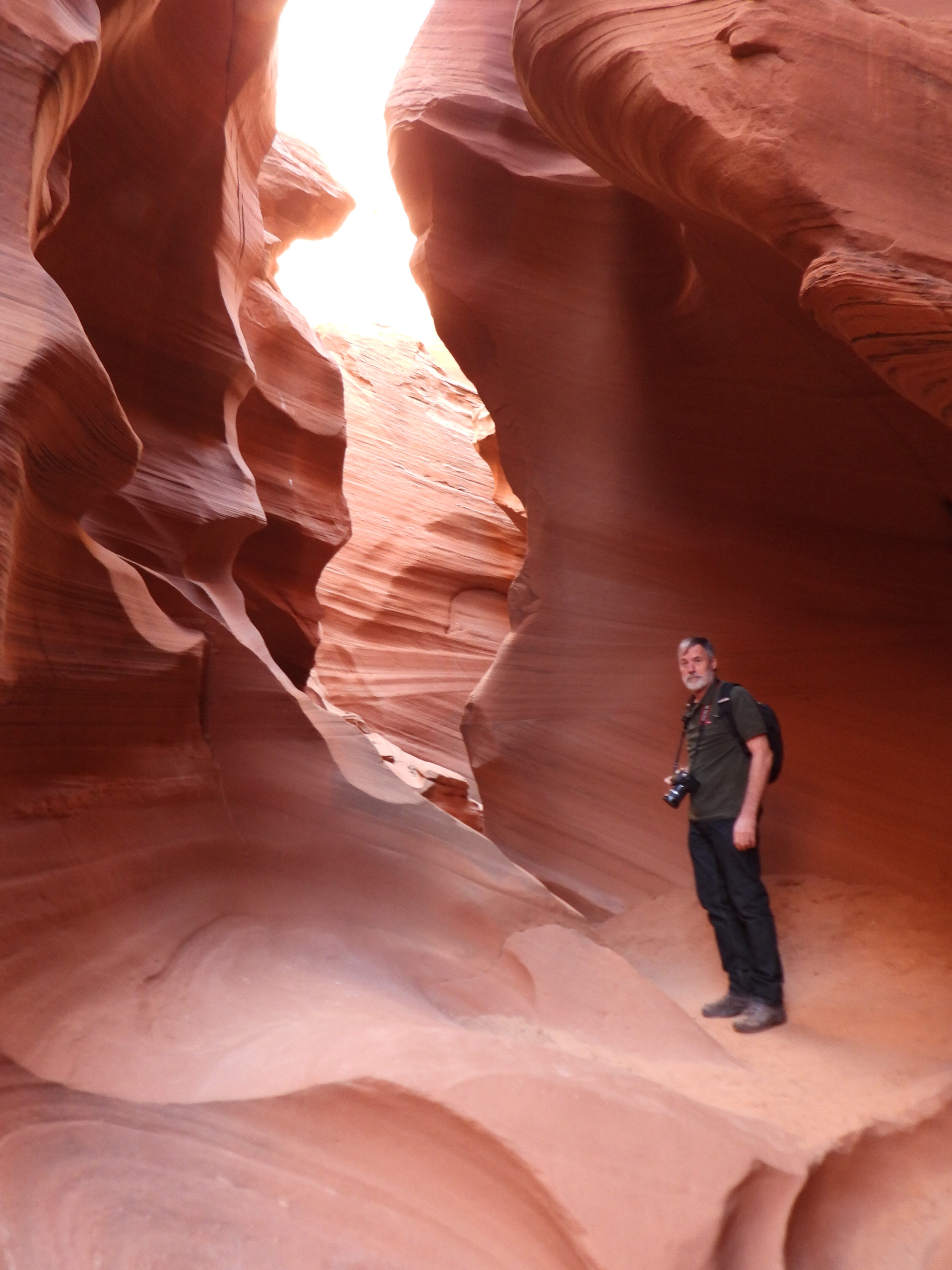 Zoals gewoonlijk komen we veel te vroeg aan bij de Mystical Antelope Canyon waar we ineens weer zien dat we in een andere tijdzone zitten. Dit blijft heel verwarrend maar we zijn alsnog veel te vroeg, we relaxen nog even dat is heel fijn in zo’n camper en als het tijd is klimmen we eruit.