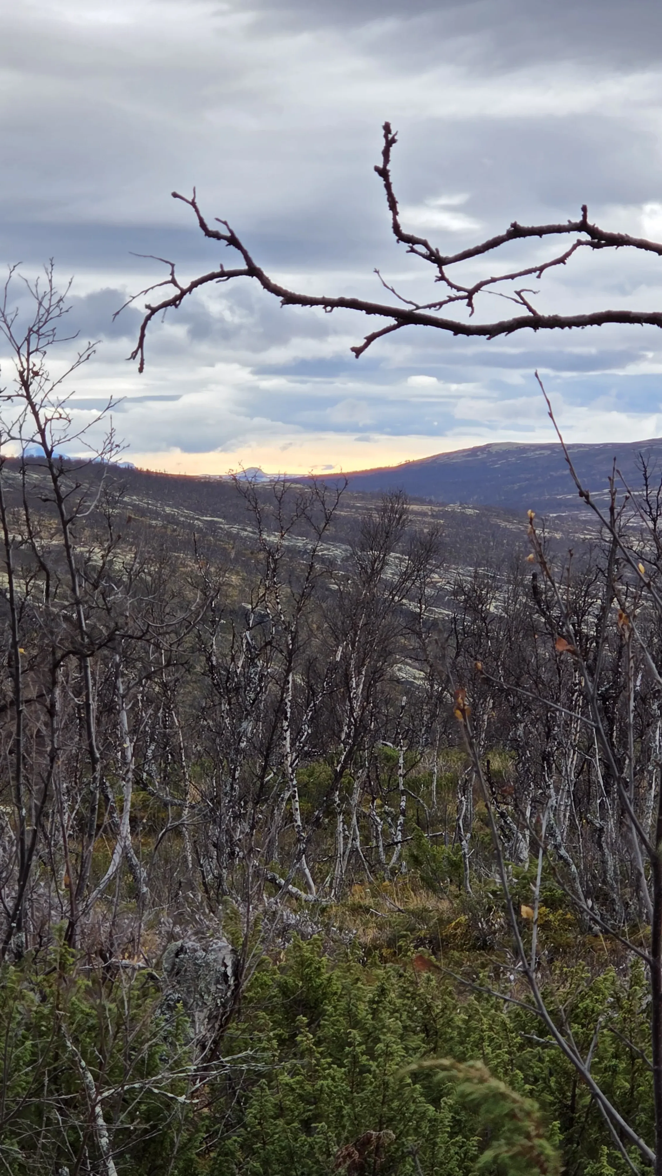 Het is een mooi gebied en met heel veel stops bereik ik ook de top, althans zo leek het. Boven aangekomen waait het heel hard, het is een koude gure wind. En de top is nog niet bereikt die ligt nog veel verder. In de verte zie ik Thijmen lopen en als ik zie wat voor een klim ik nog moet maken geef ik de moed op. Ik app Thijmen dat hij de auto sleutels even moet komen brengen omdat ik toch terug ga. Er is hier in de verste verte geen beest te bekennen.