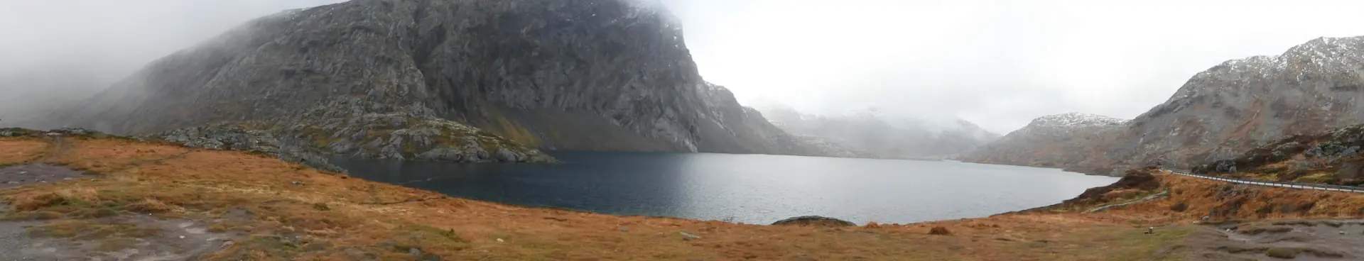 Als we verder rijden valt ons op dat hier wel heel veel meertjes boven op de berg zijn, dat verklaart ook alle watervallen in de omgeving. Als we het hoogste punt gehad hebben zien we dat we een flinke daling moeten maken, met heel veel haarspeld bochten. Zo gaaf om te zien.