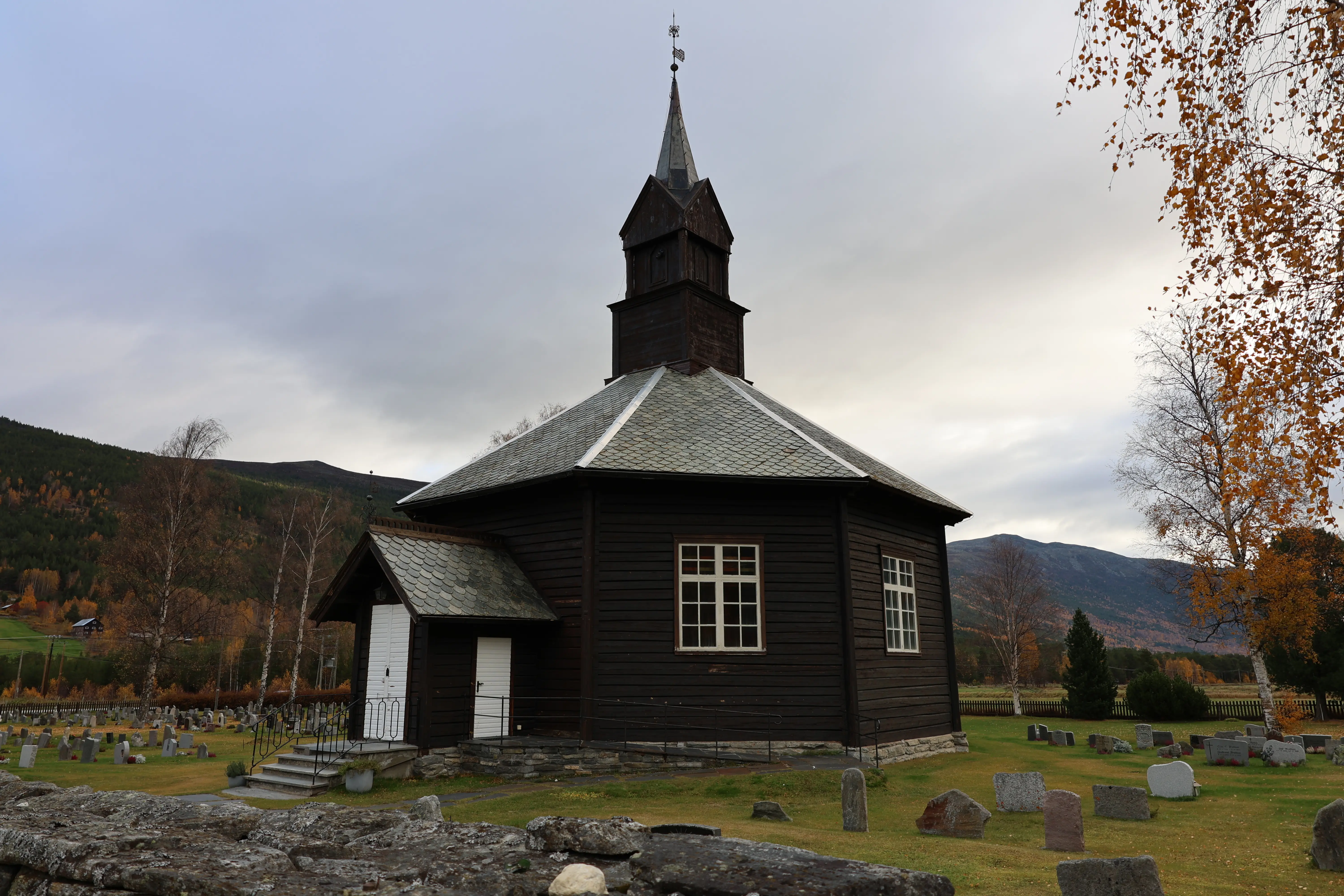 Onze eerste stop vandaag is bij Nordberg kyrkje, ook weer een leuke kerk om te zien met een geocache. Er is een meneer aan het werk dus we gaan maar niet naar binnen.