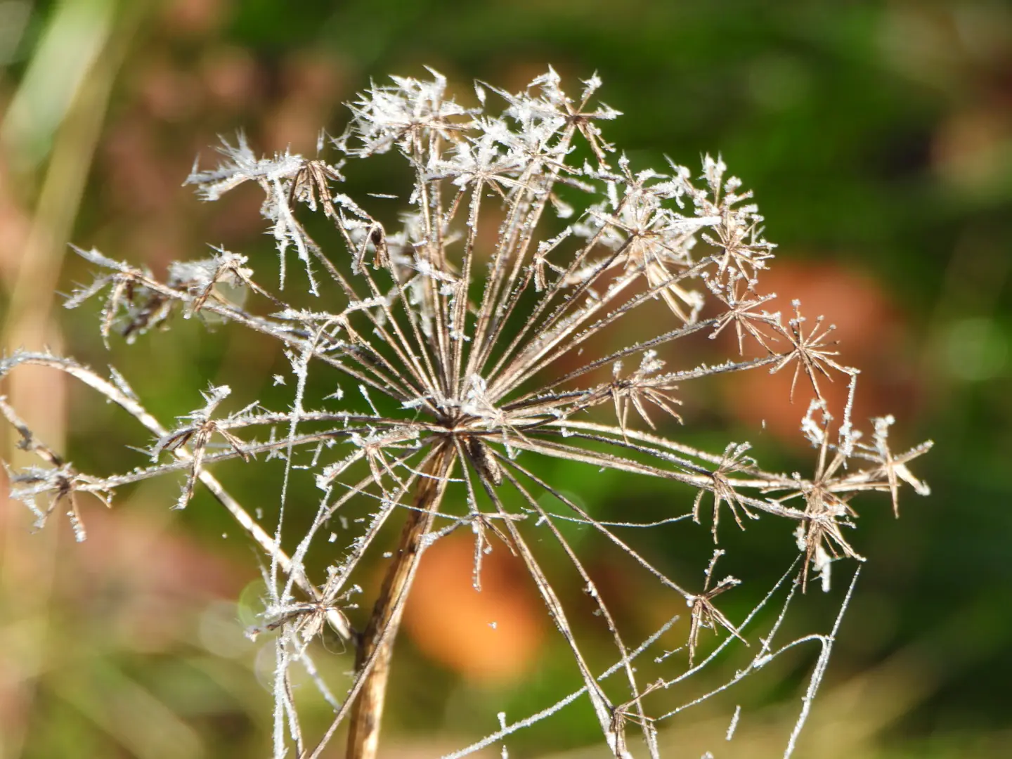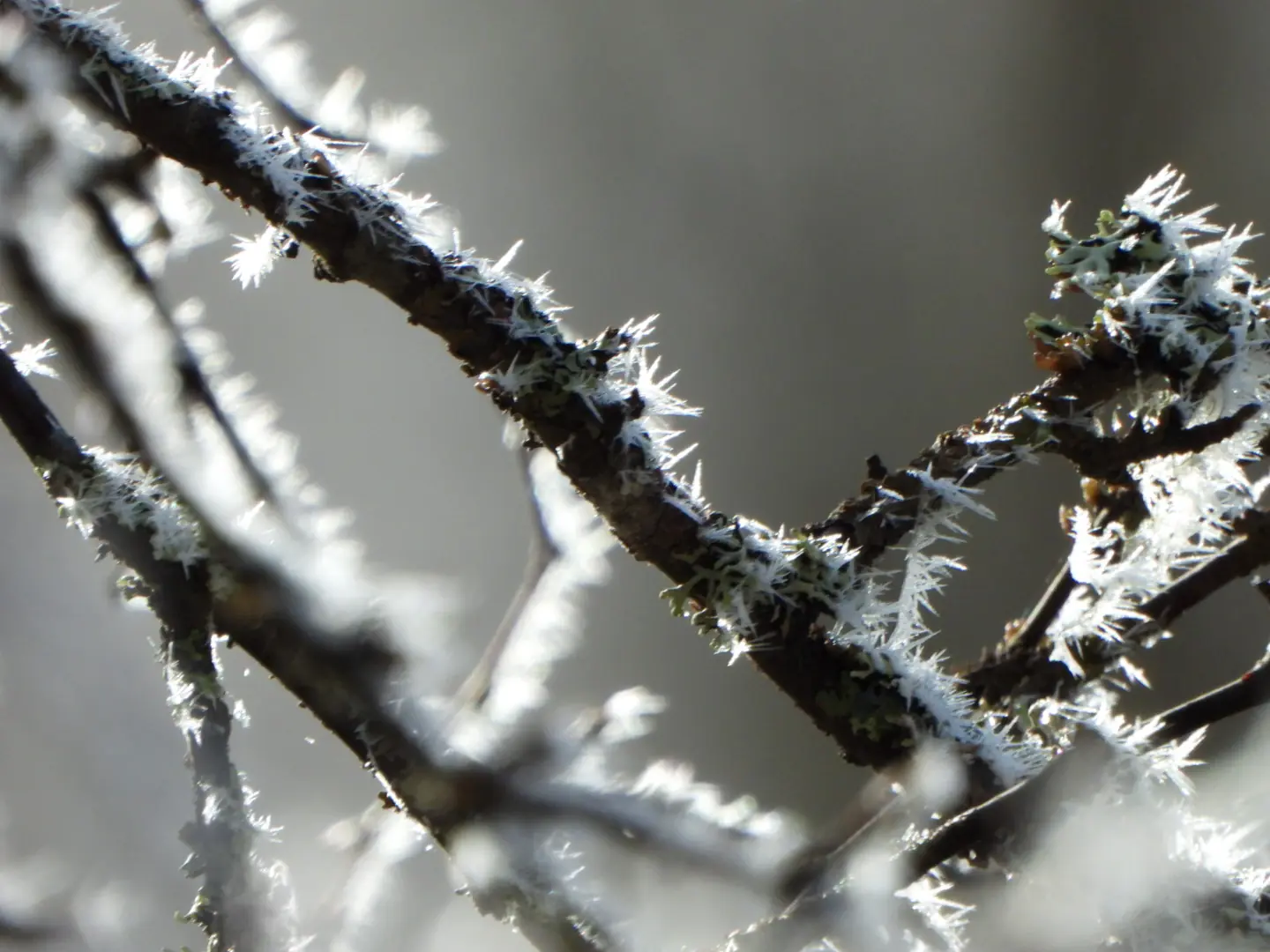 Wanneer we vandaag wakker worden is de wereld helemaal wit, niet van de sneeuw maar van de rijp die overal op zit. Het is schitterend om te zien alles wit en hele lage wolken.