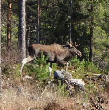 Hierna gaan we op weg naar Brattfallet maar voordat we er zijn gaat Thijmen vol op de rem, voor ons op de weg staat een Eland, we pakken gauw de camera en proberen foto’s te maken.
