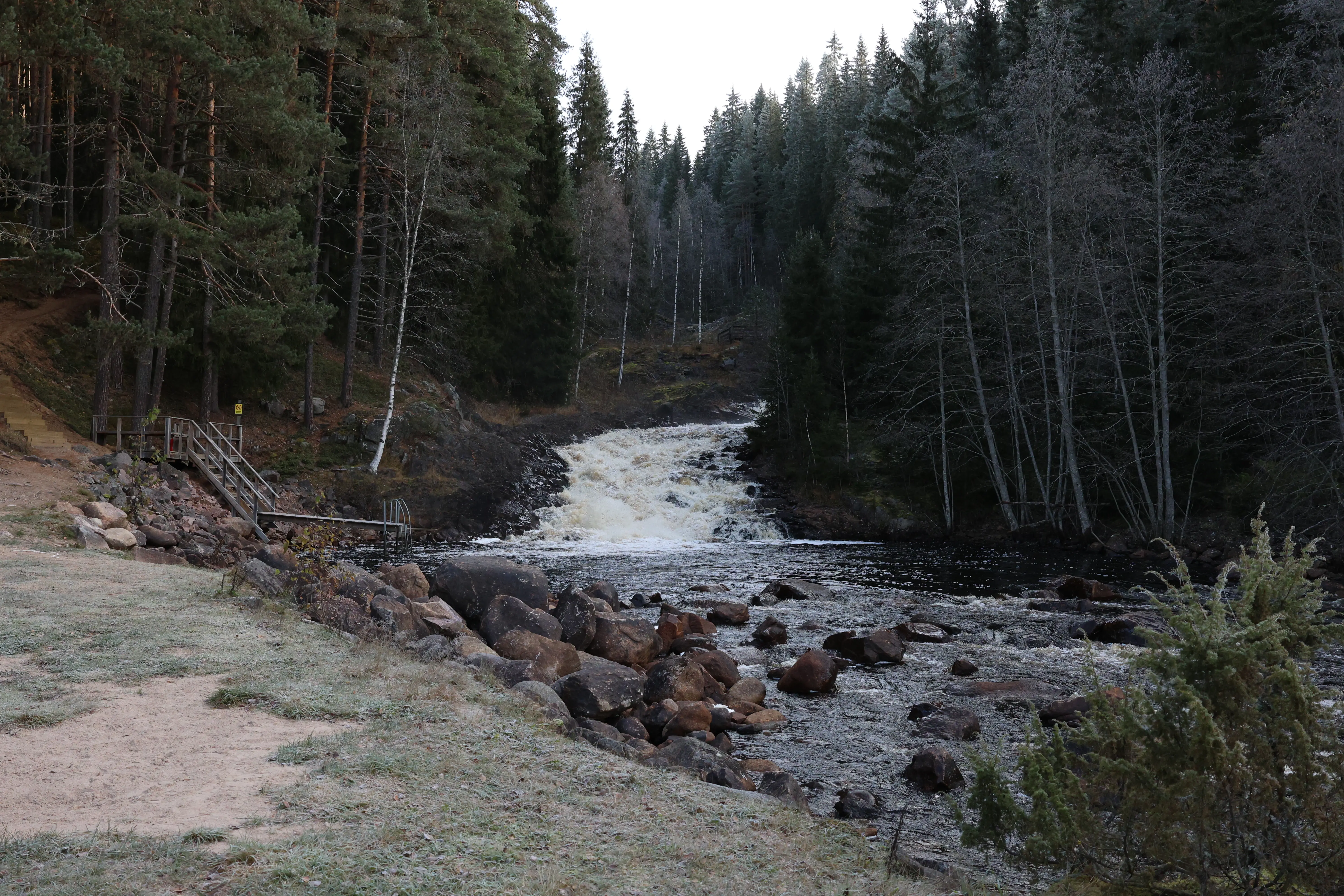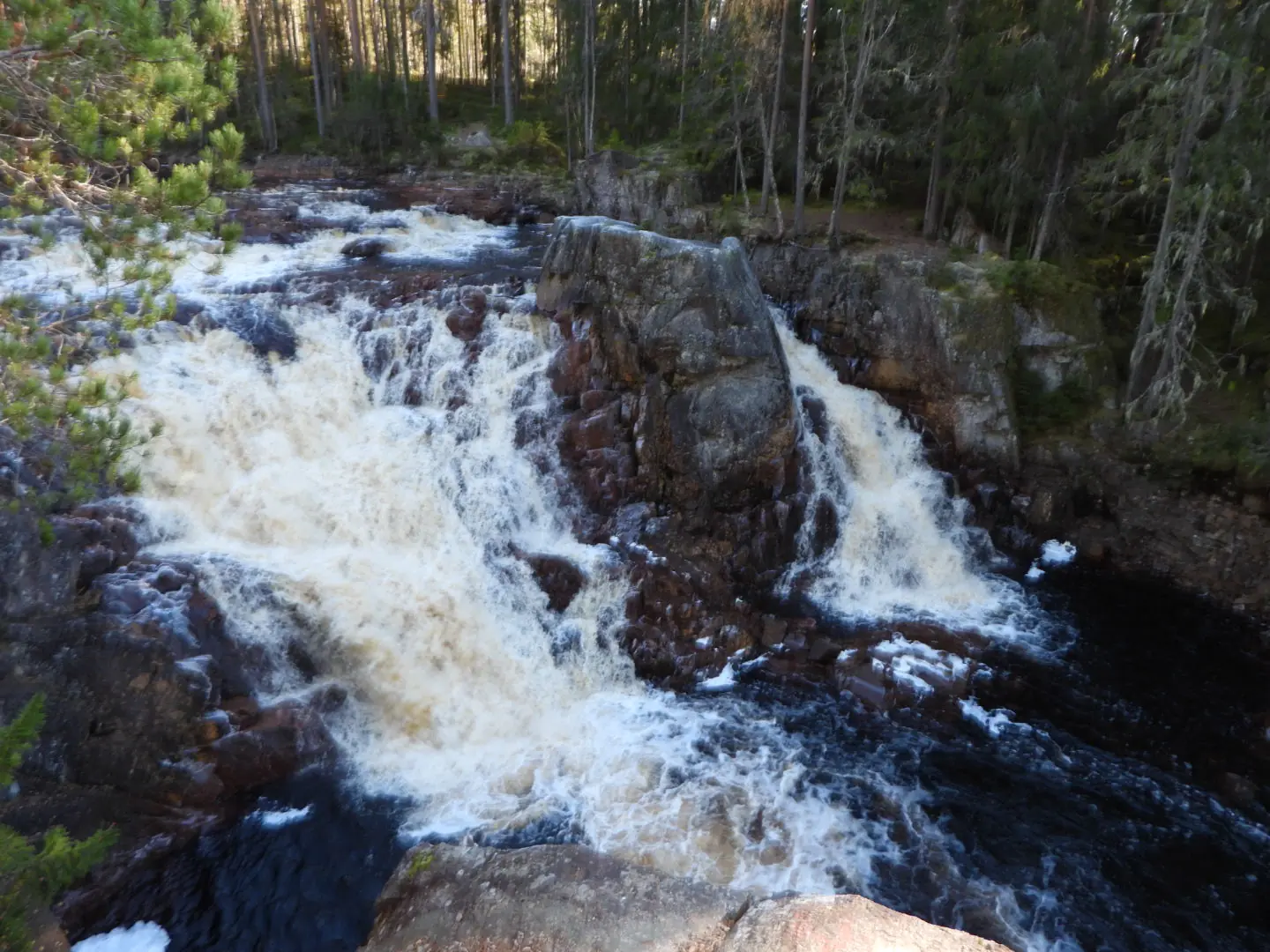 Dan rijden we door naar Fämtfallet een bruine waterval, waar de watervallen in Noorwegen helder en doorzichtig waren zijn ze hier donkerbruin heel apart om te zien.