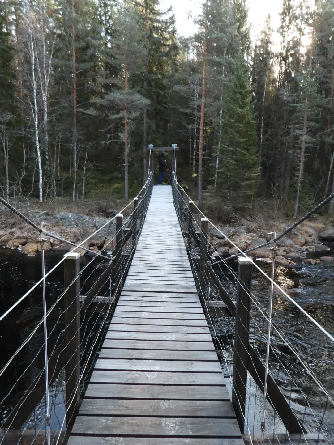 We wandelen heerlijk door het bos en zijn al heel snel bij de brug, leuk om te zien en functioneel waarschijnlijk maar hij stelt niet heel veel voor.